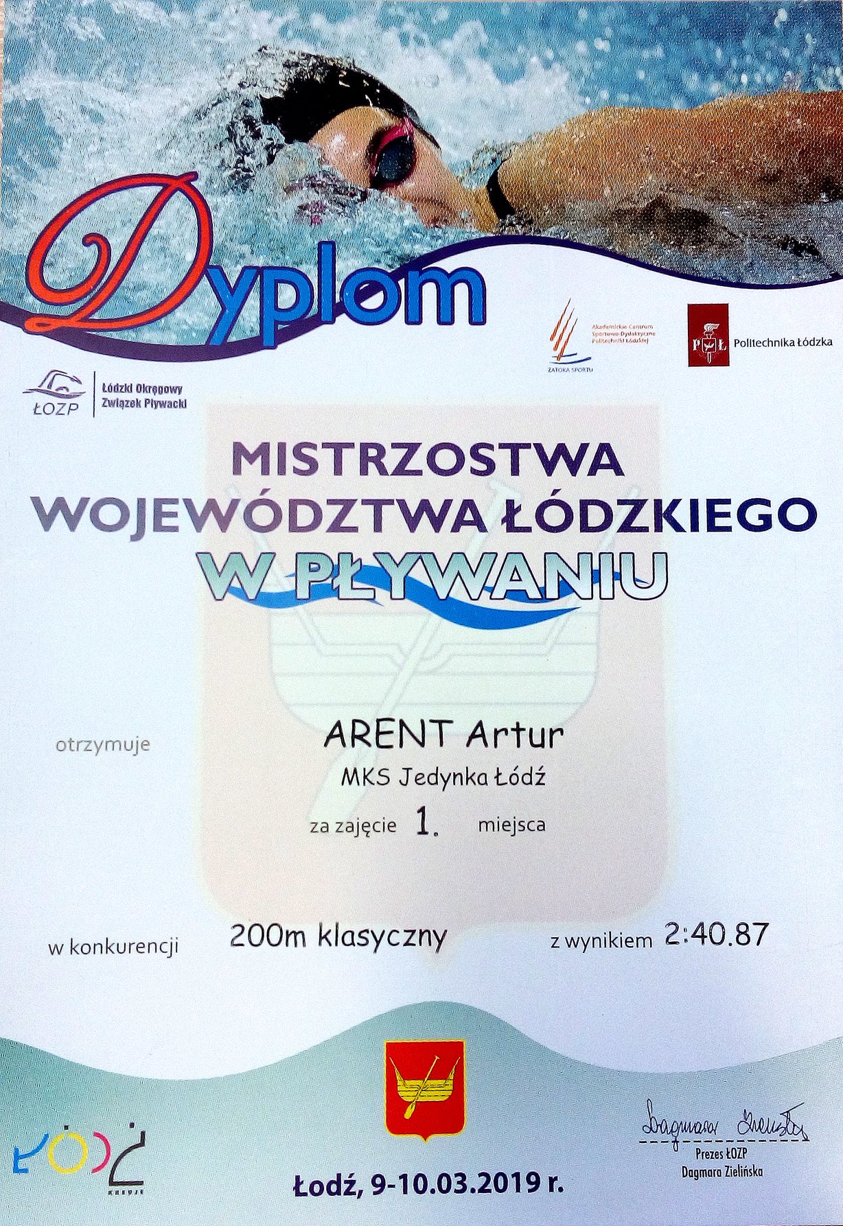 Artur Arent (uczeń klasy 7 ASP) zajął 1 miejsca w Mistrzostwach Województwa Łódzkiego w pływaniu w konkurencjach: 50 metrów stylem klasycznym i 200 metrów stylem klasycznym. Dodatkowo otrzymał podziękowanie za osiągnięcie wysokiego wyniku sportowego i powołanie do KADRY NARODOWEJ JUNIORA w pływaniu POLSKIEGO ZWIĄZKU PŁYWACKIEGO na rok 2019.