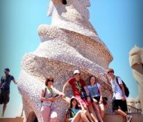 Drugiego dnia zawitaliśmy do Parku Güell zaprojektowanego przez wspaniałego architekta Antonio Gaudiego. Podczas spaceru towarzyszyła nam pani przewodnik, która w języku angielskim przybliżyła nam wiele interesujących informacji na temat zastosowanych rozwiązań i historii tego miejsca. Kolejną atrakcją był zjazd kolejką ze wzgórza Montjuïc. Dzięki temu zobaczyliśmy panoramę Barcelony w pełnej okazałości. Wspaniały widok niejednemu zapierał dech w piersiach! Koniec dnia spędziliśmy na sportowo, odbywając wycieczkę rowerową ulicami stolicy Katalonii.
