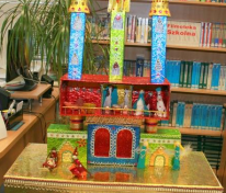 Konstrukcję szopki wymyśliłam zupełnie sama. Z kolei różne ozdoby to efekt moich poszukiwań w Internecie. Wzorowałam się też na pocztówkach.