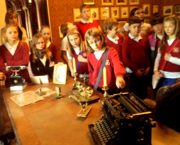 Grupa uczniów z profilu regionalnego odwiedziła pałac Izraela Poznańskiego – obecnie Muzeum Miasta Łodzi. Największe wrażenie wywarła na nas sala balowa i przepiękne secesyjne dekoracje. Dowiedzieliśmy się wielu ciekawostek z życia zamożnych łodzian w XIX wieku. Zainteresowały nas zwłaszcza przedmioty codziennego użytku, takie jak nocnik, telefon na korbkę, suknie pani domu czy przeznaczenie bibelotów na biurku słynnego fabrykanta. Pytaniom nie było końca – wyszliśmy 15 minut po zamknięciu muzeum! Pani przewodnik stwierdziła, że dawno nie widziała dzieci tak zainteresowanych tematem.Ten piękny wiosenny dzień zwieńczyły lody na rynku Manufaktury. (W.K-H)