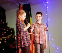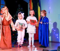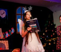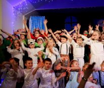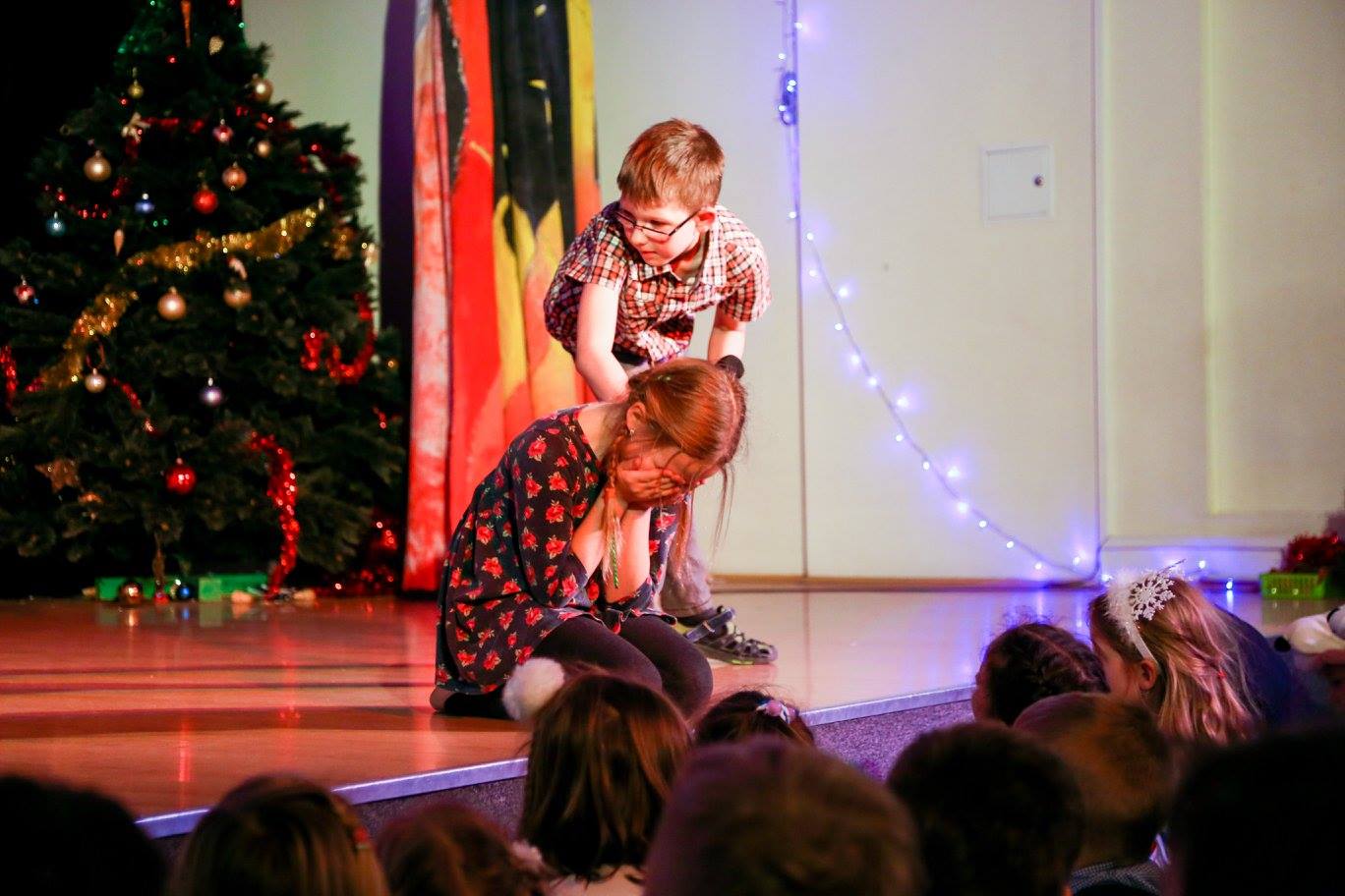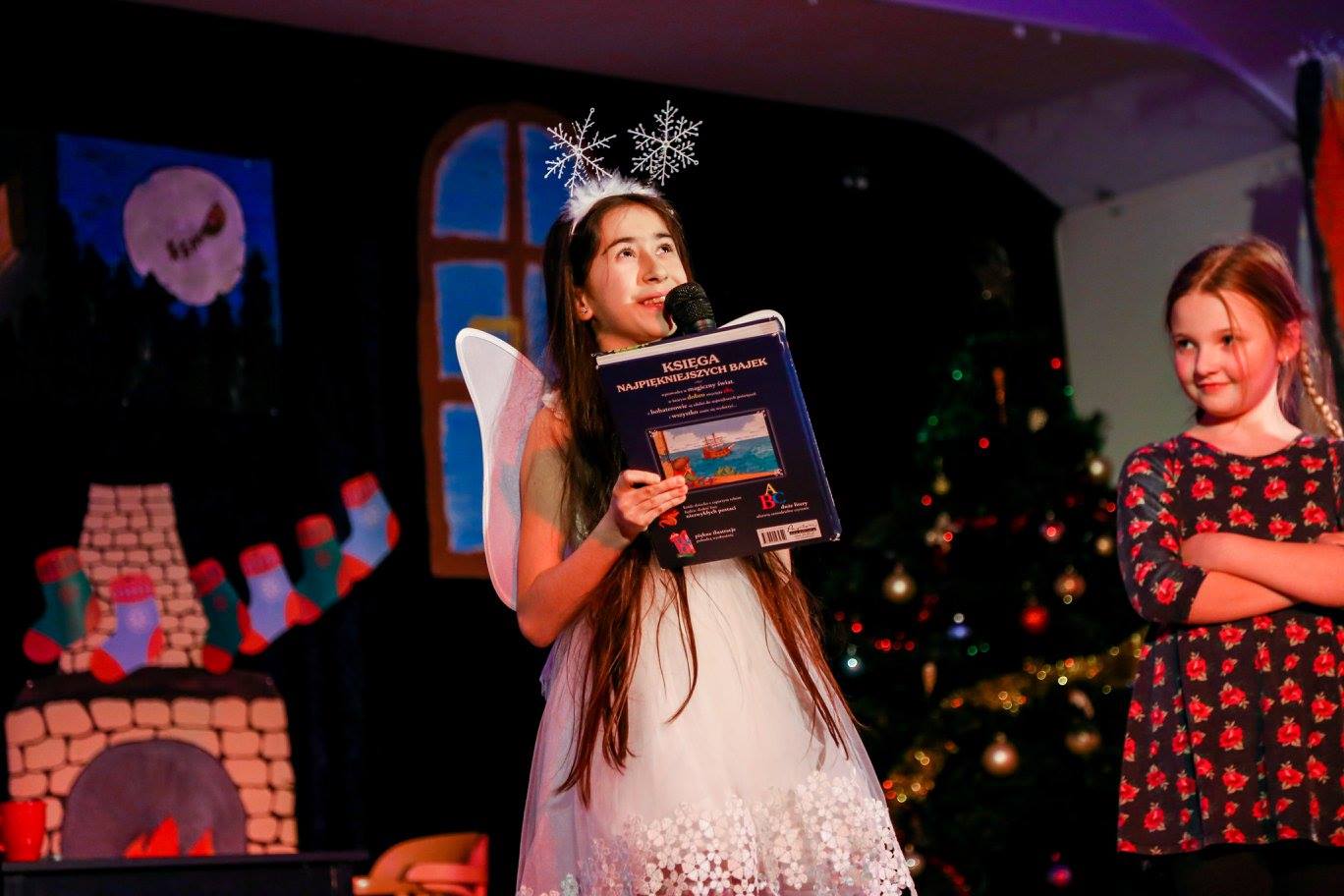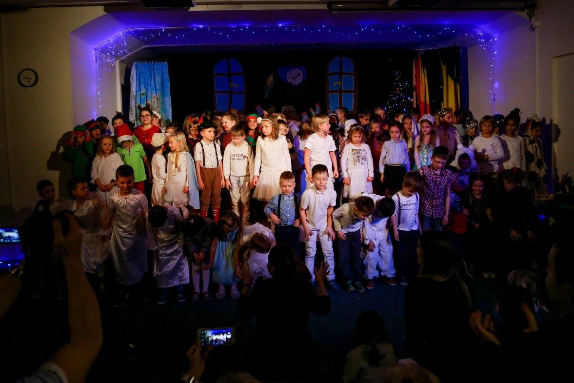 Na 22 grudnia przypadał Christmas Show klas 0-4 Anglojęzycznej Szkoły Podstawowej. W tym roku nad całością przedstawienia i twórcą ciekawego scenariusza była p. Agata Marciniak. W przedstawieniu wzięli udział wszyscy uczniowie, którzy na koniec zaśpiewali piosenkę w dwóch językach! Uczniowie naszej szkoły również chętnie udzielili wsparcia świetlicy środowiskowej, oddając swoje zabawki, kupując artykuły szkolne i książki, dla uczęszczających tam dzieci. Opiekunem projektu była p. psycholog Anna Staniaszczyk, która wszystkich nagrodziła dyplomami i słodką niespodzianką. Jednak największym sukcesem okazała się licytacja kalendarzy i książek z wierszami i opowiadaniami naszych uczniów, podczas której zebrano rekordową kwotę! Pieniądze zebrane na aukcjach oraz podczas kiermaszy 21 i 22 grudnia, trafiły do podopiecznego Fundacji Gajusz – 16-letniego Rafała, dotkniętego nowotworem twarzy.