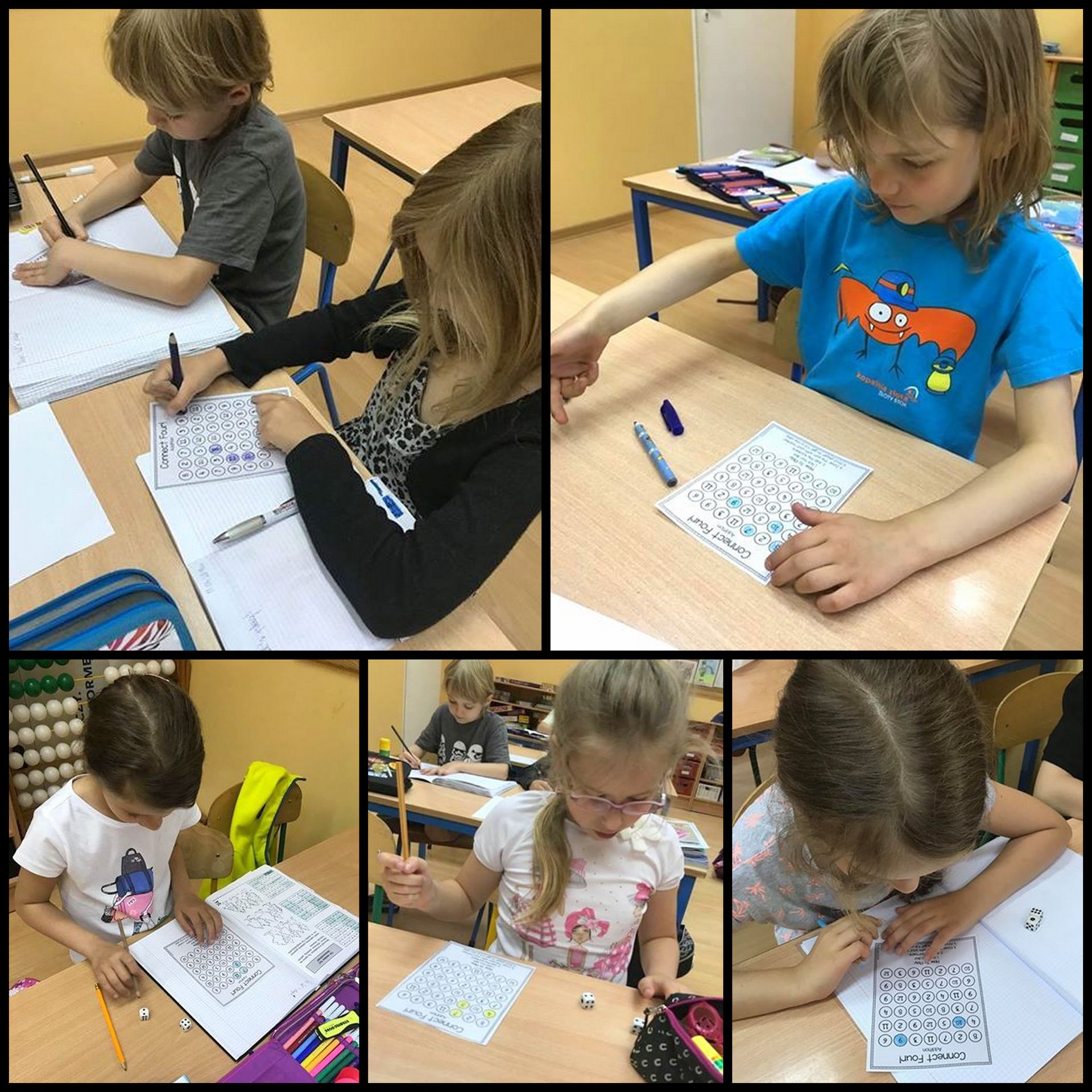 Ćwiczenie dodawania za pomocą gry w bingo MessengerWhatsApp Klasa 2A doskonaliła umiejętność dodawania grając w bingo z wykorzystaniem kości.🎲