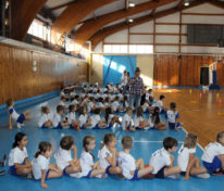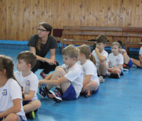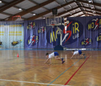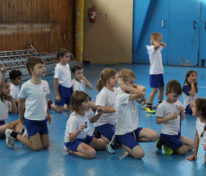 – bieganie i wkładanie piłek do czerwonych obręczy