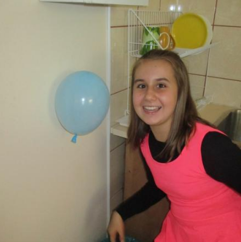 Być może nie wszystko dobrze widać na naszych zdjęciach, ale zarówno balony, jak i linijki doskonale przyciągają ziarenka pieprzu i drobne papierki! Oczywiście nie tak po prostu… Najpierw musieliśmy je potrzeć o wełniany sweter lub włosy, które… także stanęły dęba! Takie balony daje się nawet przylepić do ściany. Ale najciekawsze było to, że nawet strumień wody zakrzywia się, ponieważ jest przyciągany do naładowanego balona – zobaczcie sami!