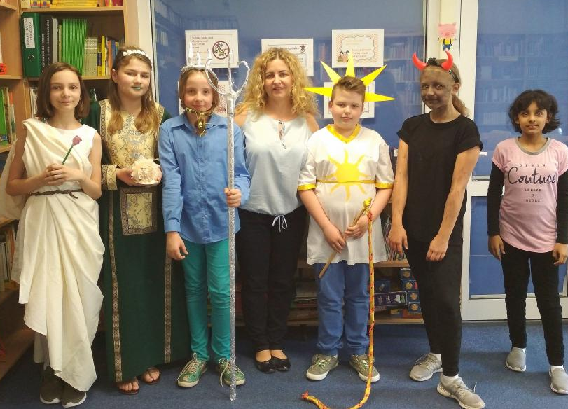 W ramach lekcji języka polskiego uczniowie wcielili się w mitologicznych bogów greckich. Oprócz ciekawych strojów dzieci przedstawiały postacie bogów prezentując swoje zdolności krasomówcze. Lekcja ta nawiązywała do zbliżającego się Światowego Dnia Książki i Praw Autorskich poprzez fakt, że Ateny zostały wybrane tegoroczną Światową Stolicą Książki.