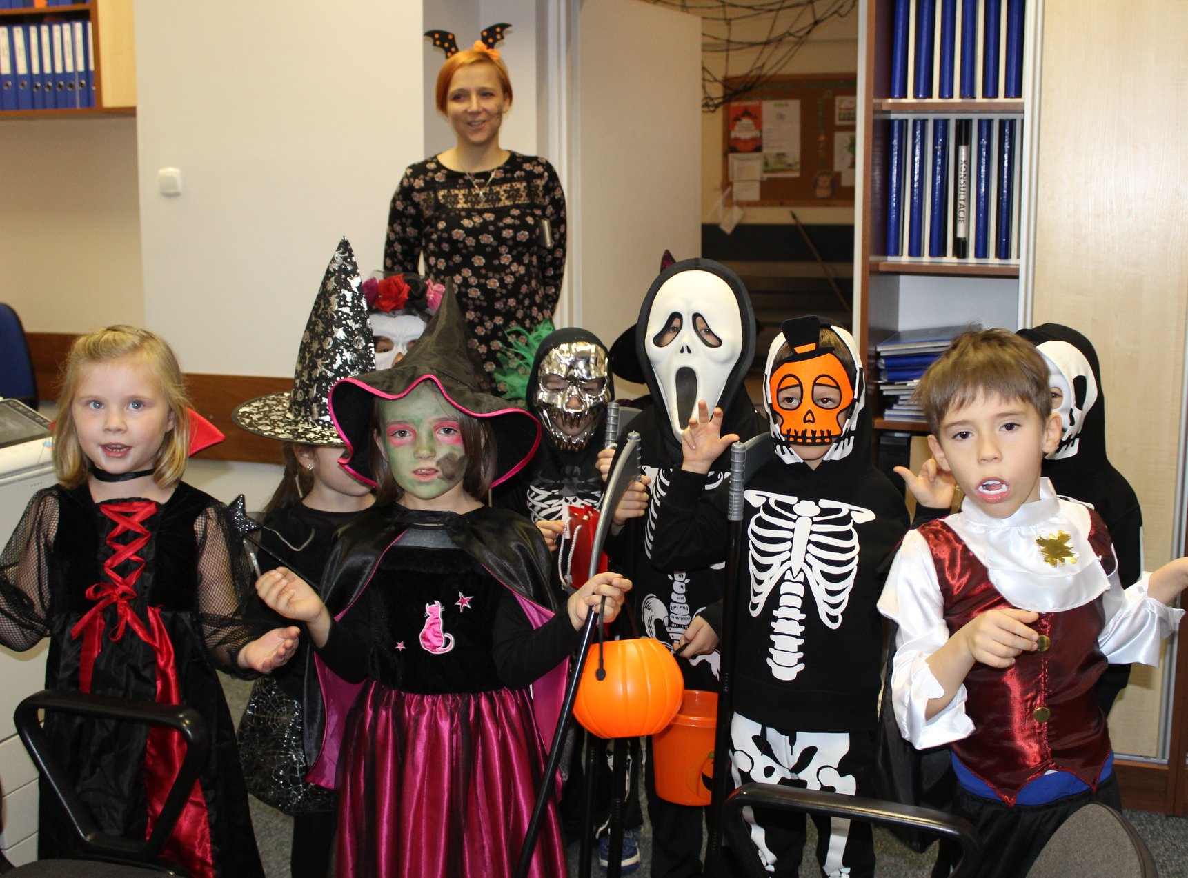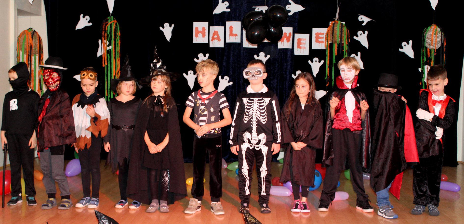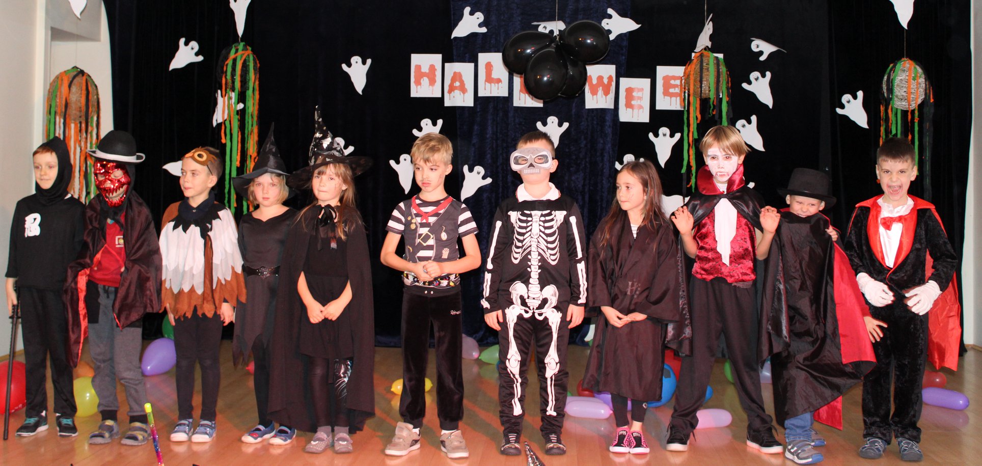 Dzieci w przerażająco pięknych przebraniach brały udział w wielu grach i zabawach zorganizowanych przez nauczycieli oraz kolegów i koleżanki ze starszy klas. Małe upiory zbierały cukierki śpiewając piosenki po angielsku w duchu zabawy Trick or Treat 🍬🍭, były tańce, quizy oraz wybory osób z najlepszym przebraniem. Nasi nauczyciele także się przebrali 😉. W tym dniu poza nauką było trochę strasznie i bardzo wesoło! 🎃