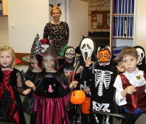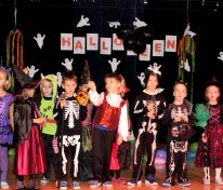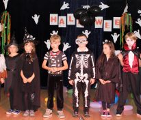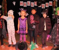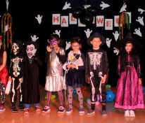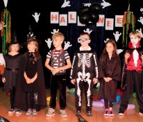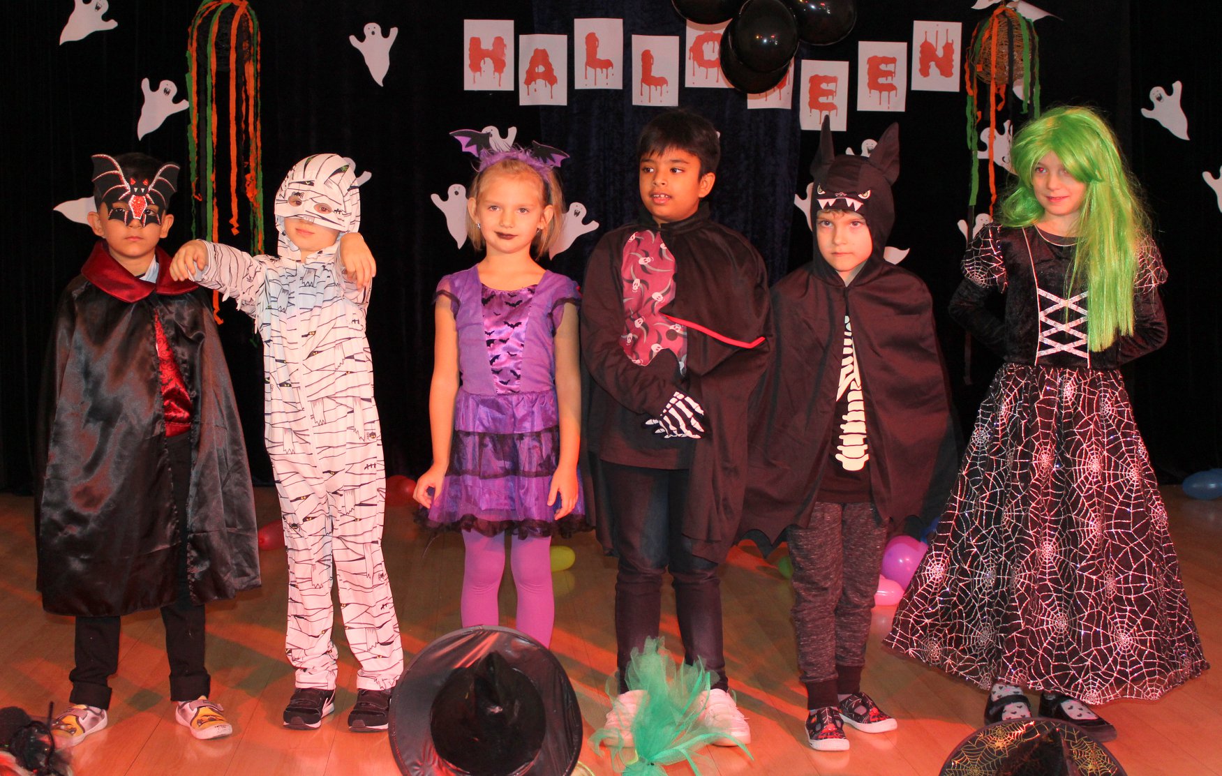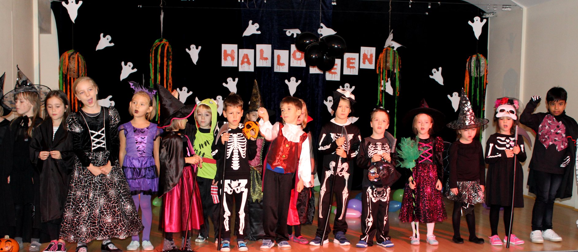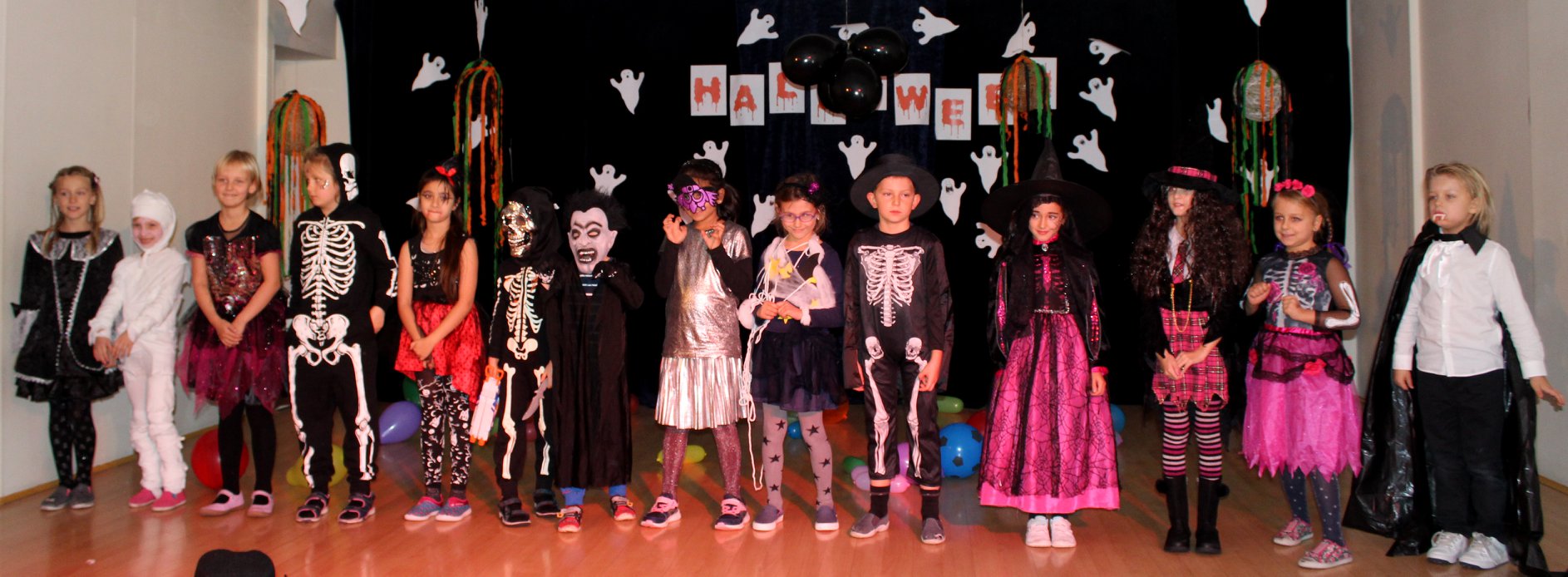 Dzieci w przerażająco pięknych przebraniach brały udział w wielu grach i zabawach zorganizowanych przez nauczycieli oraz kolegów i koleżanki ze starszy klas. Małe upiory zbierały cukierki śpiewając piosenki po angielsku w duchu zabawy Trick or Treat 🍬🍭, były tańce, quizy oraz wybory osób z najlepszym przebraniem. Nasi nauczyciele także się przebrali 😉. W tym dniu poza nauką było trochę strasznie i bardzo wesoło! 🎃