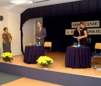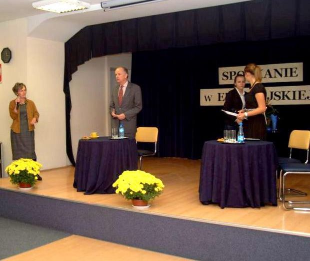 Po wykładzie wysłuchaliśmy wiersza Wisławy Szymborskiej „Spis” w recytacji uczennicy 2. klasy gimnazjum – Ali Pawłowskiej. A propos wiersza, w którym poetka pyta: Dlaczego rzeczy złe brałam za dobre i czego mi potrzeba, żeby się więcej nie mylić? – Profesor dał nam wszystkim cenną radę: Dużo myślcie, czytajcie i nauczcie się odróżniać dobre publikacje od wszechobecnego chłamu!