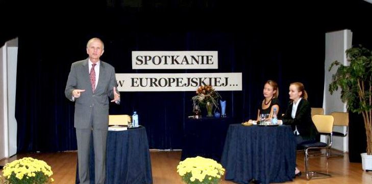 What a wonderful world – przy dźwiękach piosenki L. Armstronga powitaliśmy prof. Grzegorza Kołodko w murach naszej szkoły. Spotkanie rozpoczęło się z małym opóźnieniem… z winy PKP. Profesor w drodze do naszej szkoły był z tego powodu zafrasowany, ponieważ jest człowiekiem niezwykle rzetelnym. Do każdego niezależnie od wieku i społecznej pozycji odnosi się z estymą.