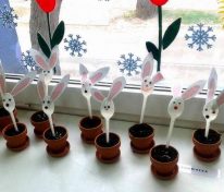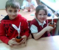 Podczas jednej z lekcji plastyki w klasie II B posialiśmy świąteczny owies oraz przerobiliśmy jednorazowe łyżki na … wielkanocne króliczki! I mamy nadzieję, że nasze życzenia z okazji Świąt Wielkiej Nocy, które wszystkim przesłaliśmy, spełniły się co do joty!!! A życzyliśmy Wam:
