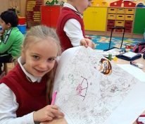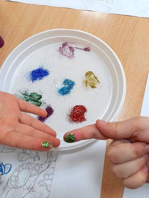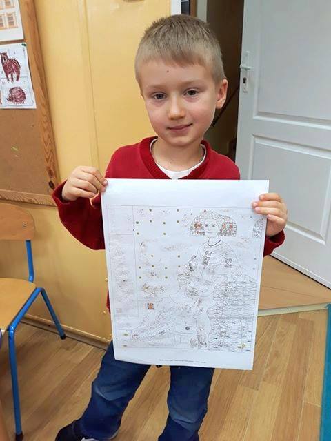 „Pokoloruj własnego Klimta”. Pod tym hasłem klasa 0 ASP poznawała twórczość wybitnego malarza – Gustava Klimta. Tym razem uczniowie kolorowali swoje prace brokatem. Widać, że z entuzjazmem podeszli do zadania.