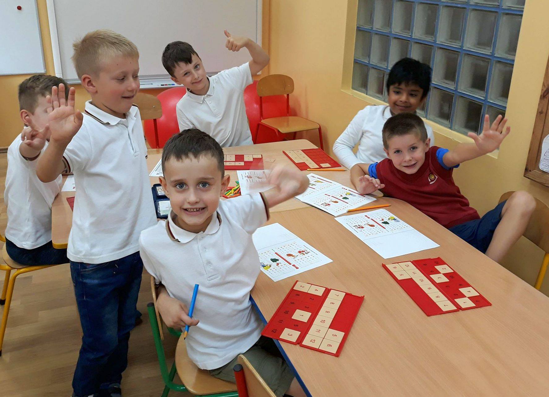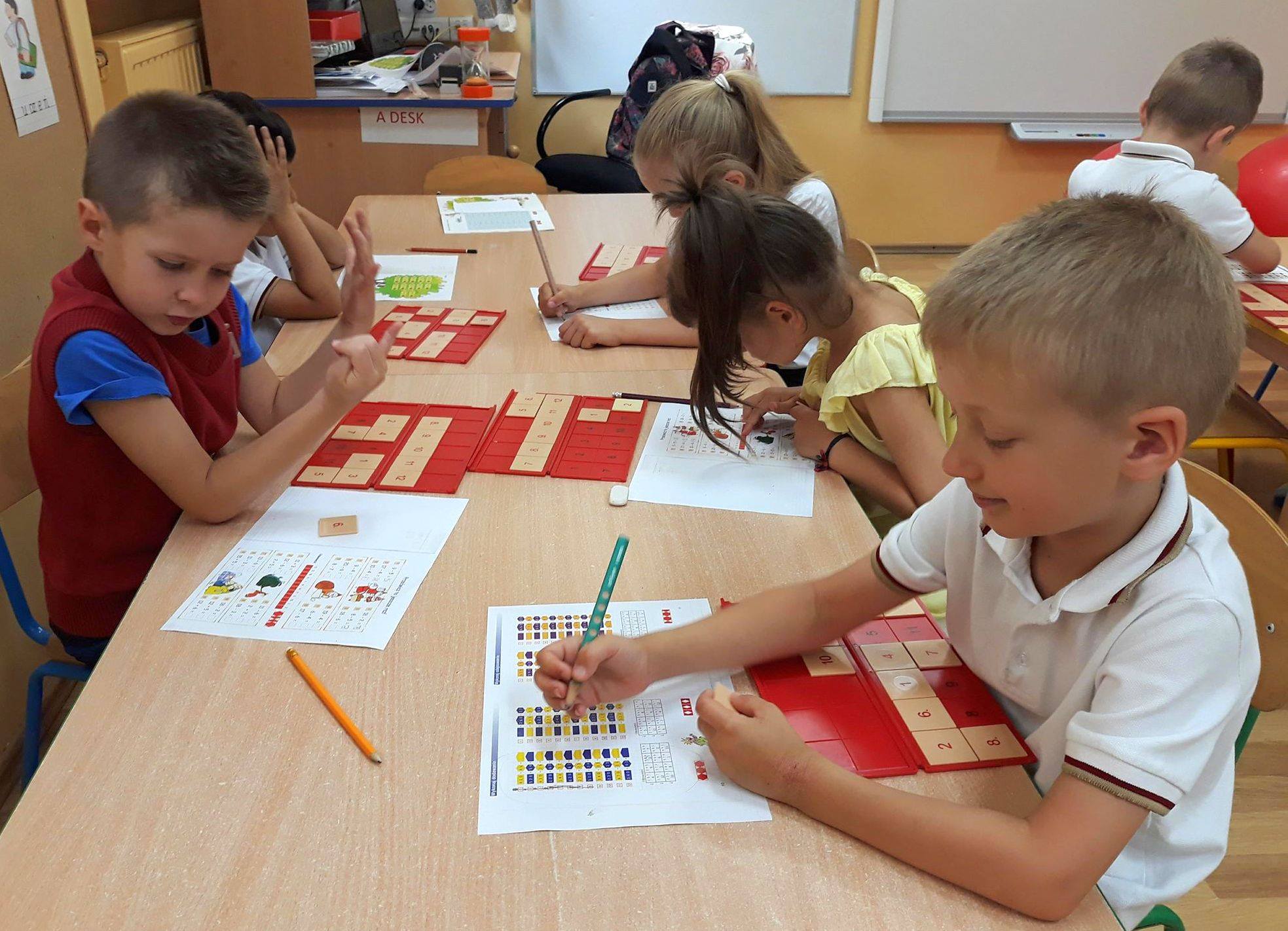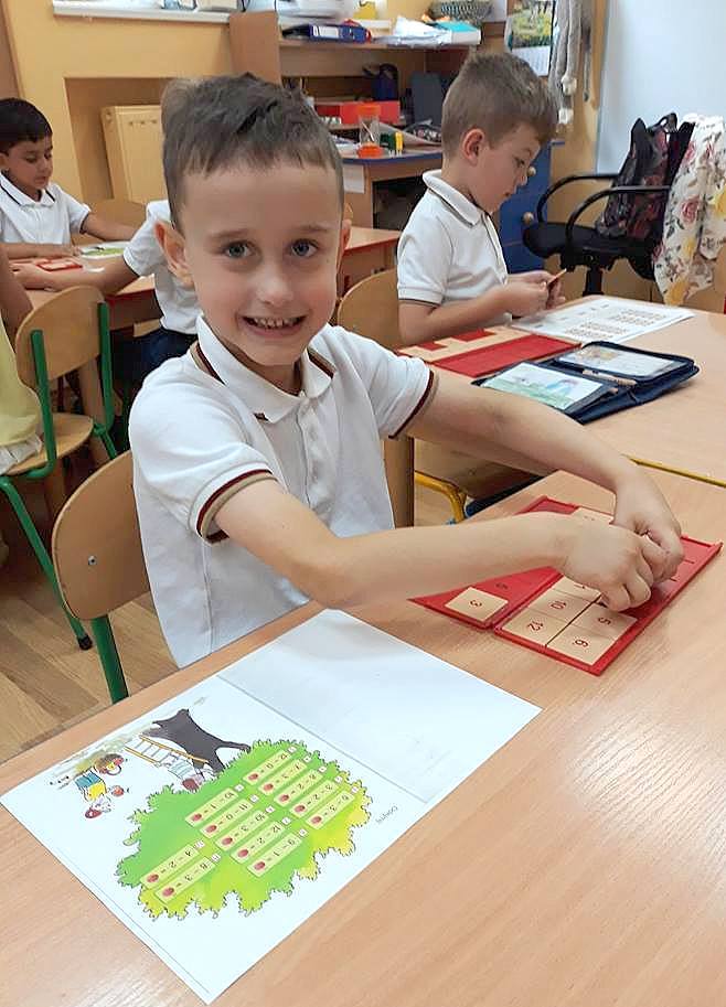 Na ostatnich lekcjach klasa 0 doskonaliła umiejętności dodawania i odejmowania w zakresie 10 i 20, a nawet 1000, po raz pierwszy przy użyciu układanek PUS. Liczenie to doskonała zabawa!