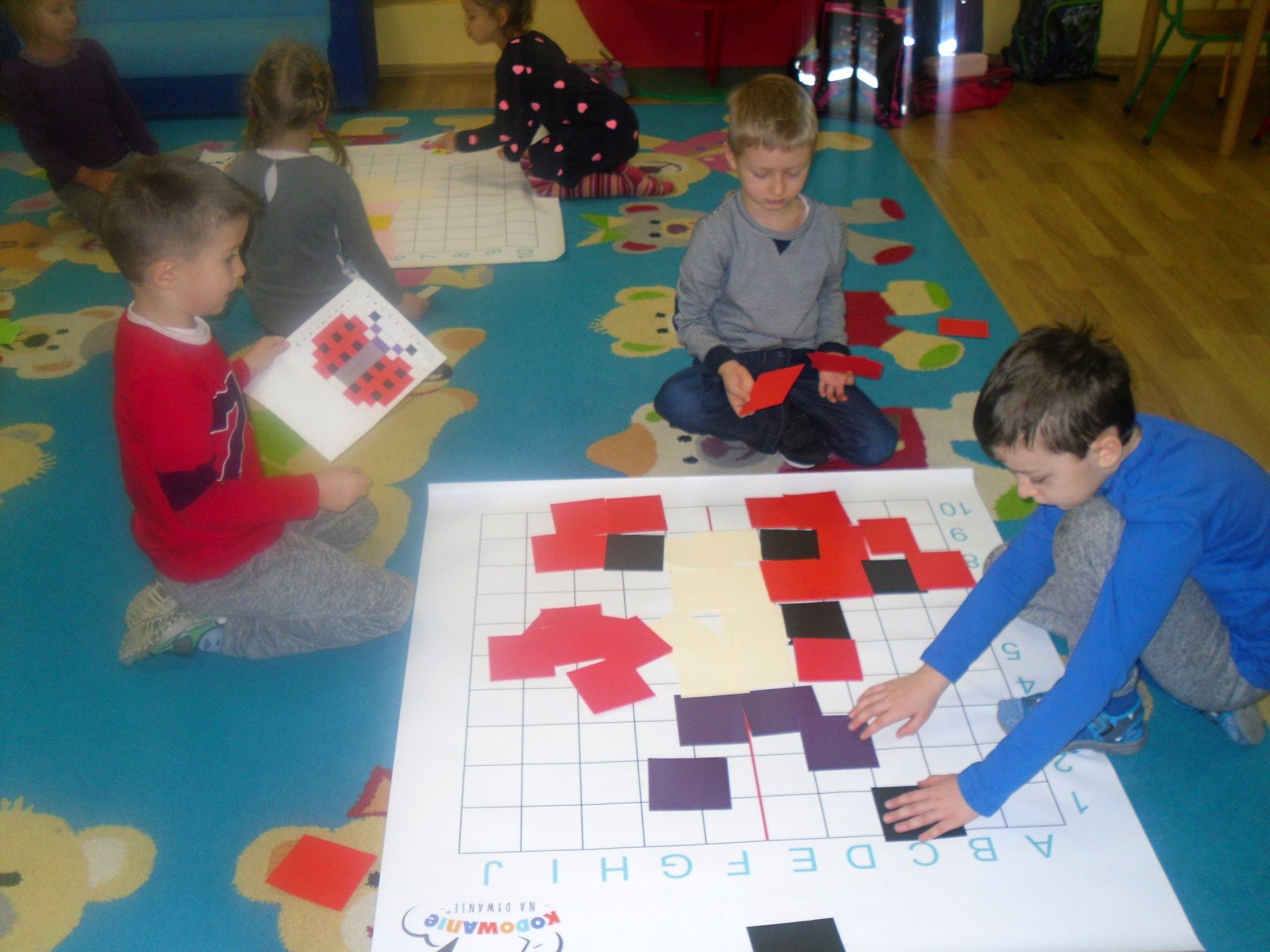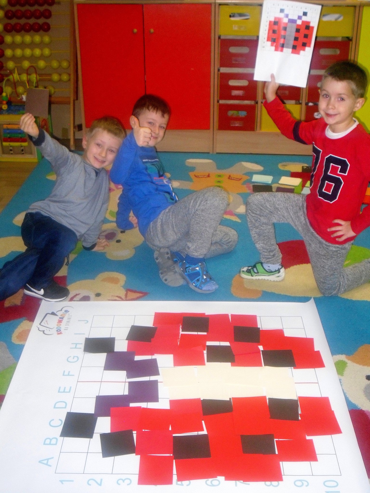 Klasa 0 uczestniczyła w „Kodowaniu na dywanie”! Uczniowie uczyli się zasad kodowania używając specjalnie przygotowanych obrazków w kształcie biedronki i motyla. Dzieci rozpoznawały cyfry i litery oraz ćwiczyły orientację na planszy w pionie i poziomie.