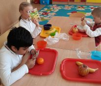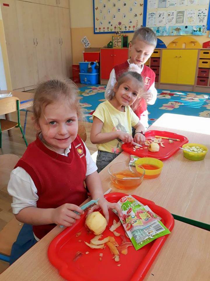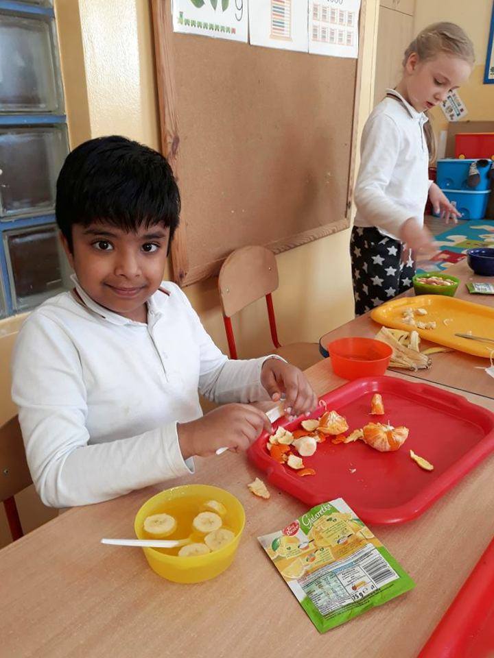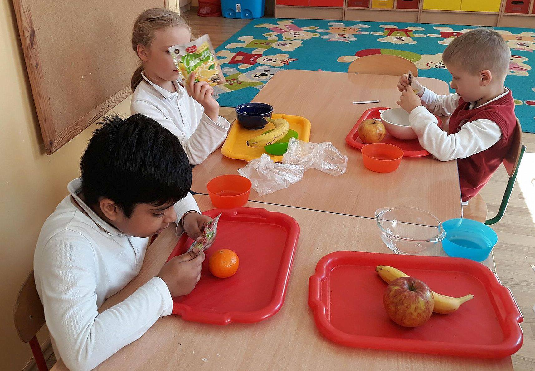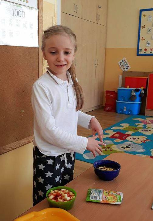 Kolorowe – owocowe galaretki w wykonaniu uczniów klasy zero MessengerWhatsApp Klasa 0 robiła galaretki. Uczniowie mieli za zadanie uważnie przeczytać instrukcję przygotowania pysznego deseru i pokroić owoce. 🍵🍊🍎🍌