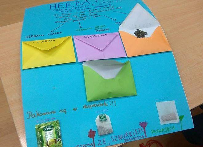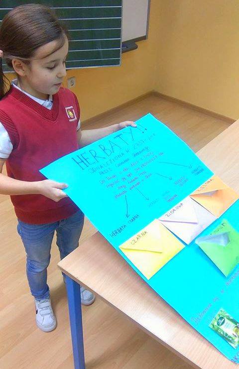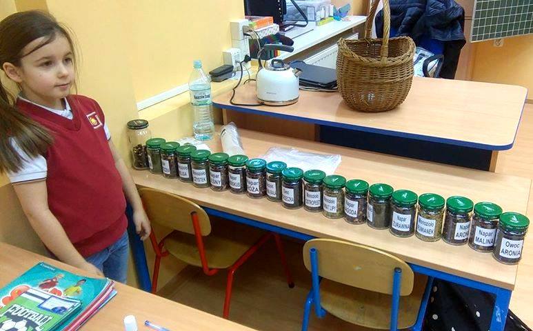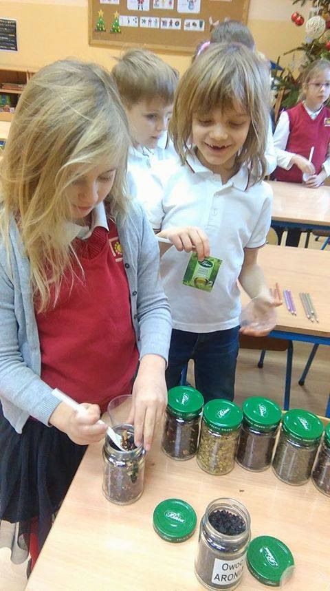 W ramach projektu „Uczeń- nauczycielem” uczennica klasy 2 ASP – Maja Kufel przeprowadziła lekcję o rodzajach oraz właściwościach herbat. Dzieci miały okazję stworzyć własne kompozycje i smakować pysznych naparów.