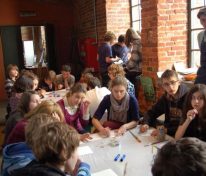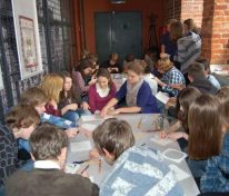 Ostatnim przystankiem naszej eskapady było Muzeum Fabryki znajdujące się na terenie dawnego imperium Izraela Poznańskiego. Tam poznaliśmy tajniki procesu powstawania tkaniny i sposobów jej wykończania oraz spróbowaliśmy własnych sił w projektowaniu i ręcznym malowaniu wzorów.