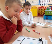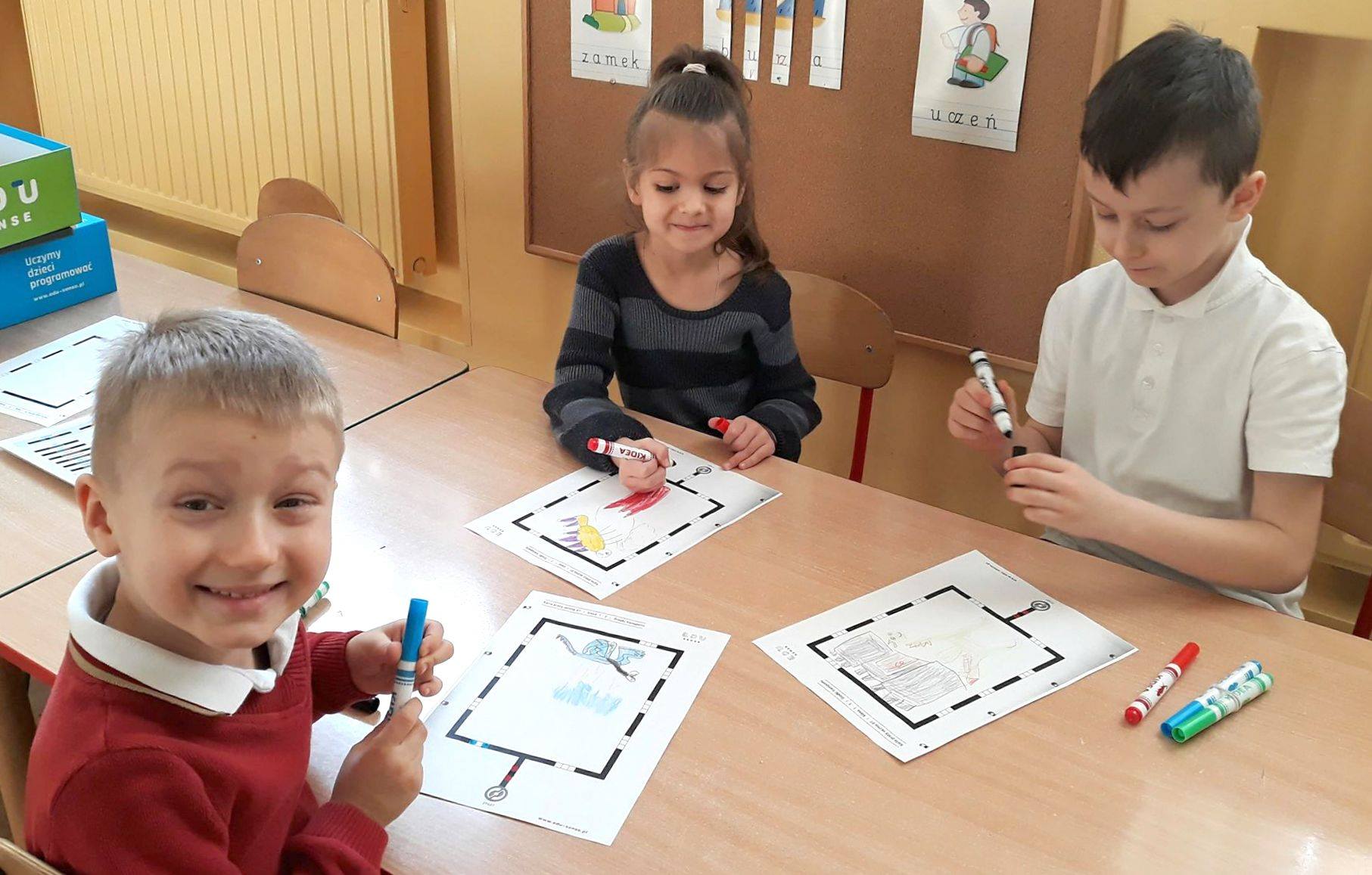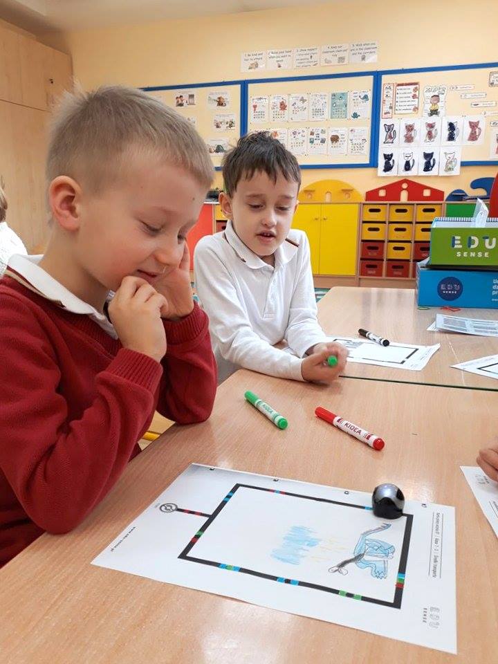 W klasie 0 omawianie legendy o smoku wawelskim połączyliśmy z nauką programowania. Tym sposobem Szewczyk Dratewka znalazł drogę do smoka za pomocą ozobotow!