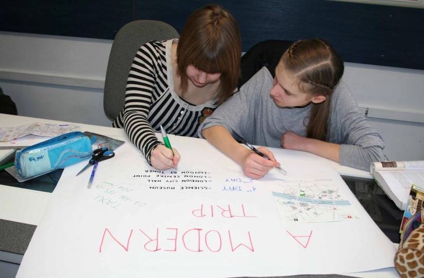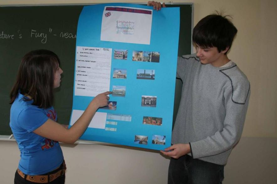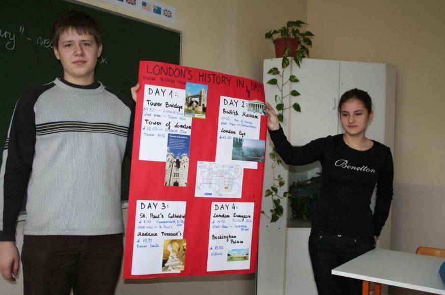 Klasa zamieniła się w biuro podróży- uczniowie zostali podzieleni na trzyosobowe grupy a następnie otrzymali zadanie przygotowania czterodniowej wycieczki dla wylosowanego klienta. Były trzy opcje: osoba zainteresowana historią, fanatyk sztuk wszelkich oraz miłośnik architektury nowoczesnej. Podczas dwugodzinnego projektu każda z grup miała za zadanie zaplanowanie turyście każdego dnia zgodnie z jego zainteresowaniami tak, aby wycieczka była interesująca i cenowo konkurencyjna. Uczniowie musieli wziąć pod uwagę koszty wstępów do zaplanowanych obiektów oraz koszty transportu. A wszelkich informacji „udzielił” Internet… Efektem końcowym był plakat lub broszura reklamowa z propozycją wycieczki. Było dużo pracy ale i dużo satysfakcji 🙂 Do wycieczki po Londynie w „realu” jesteśmy już świetnie przygotowani.