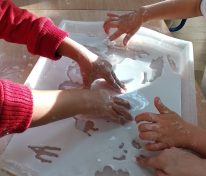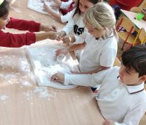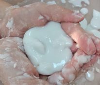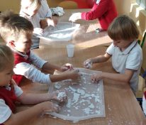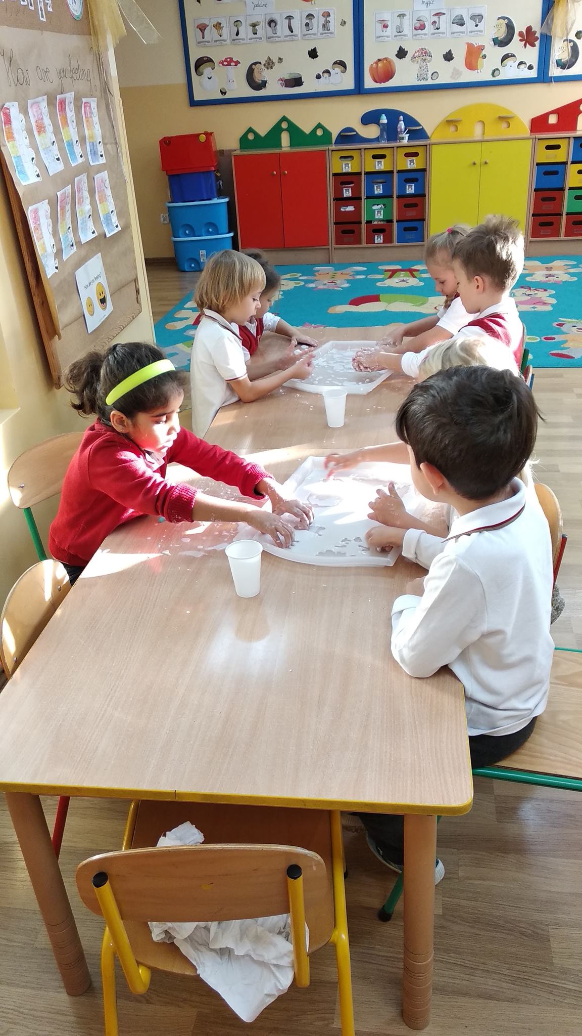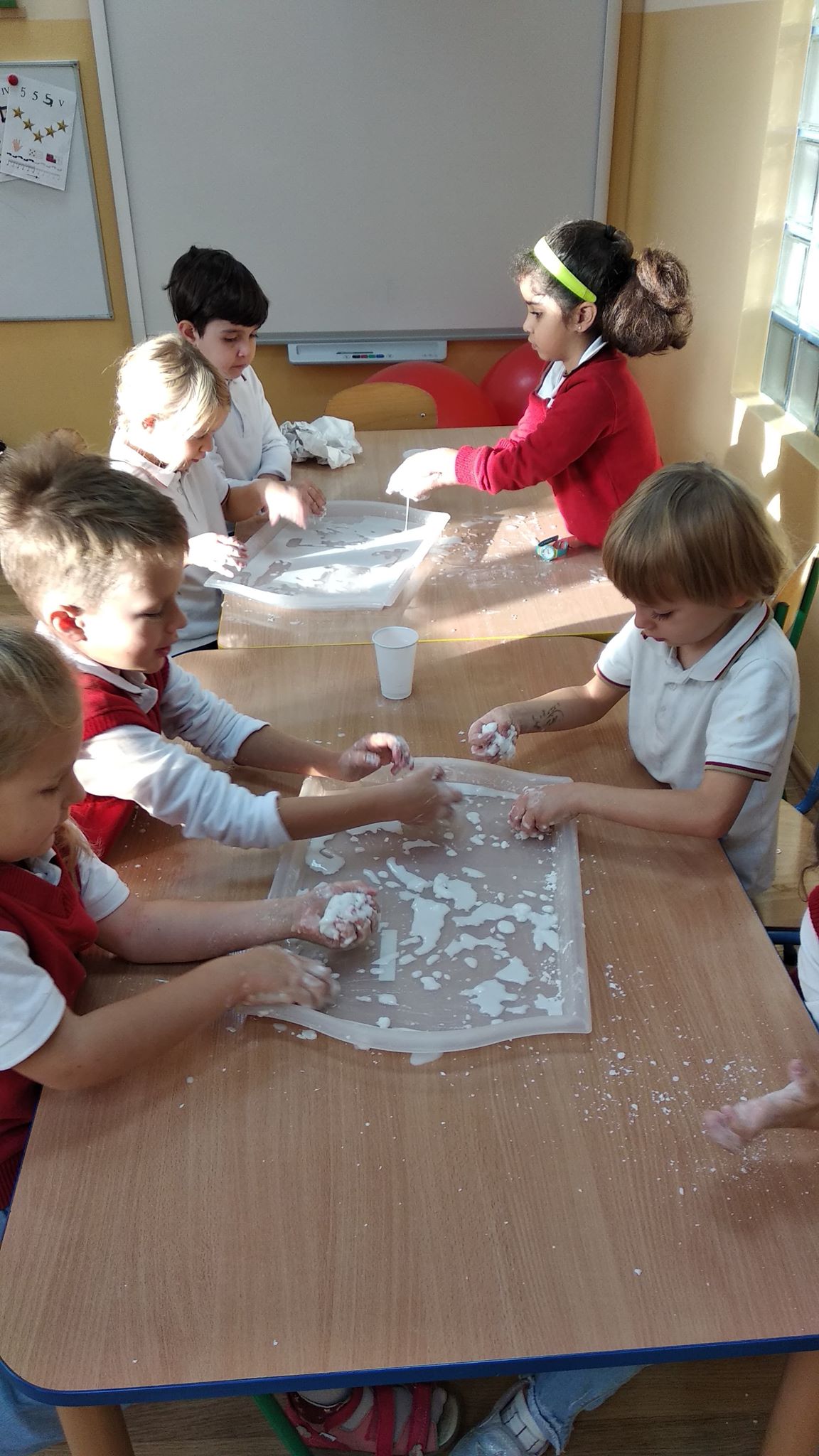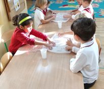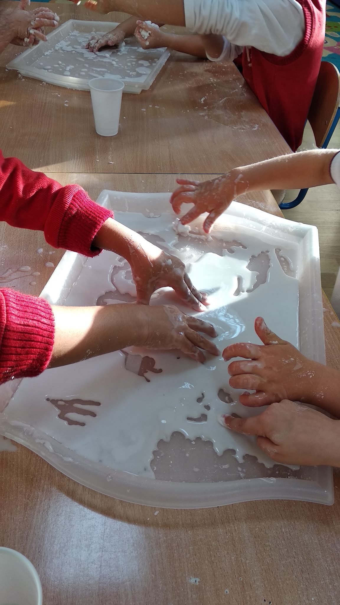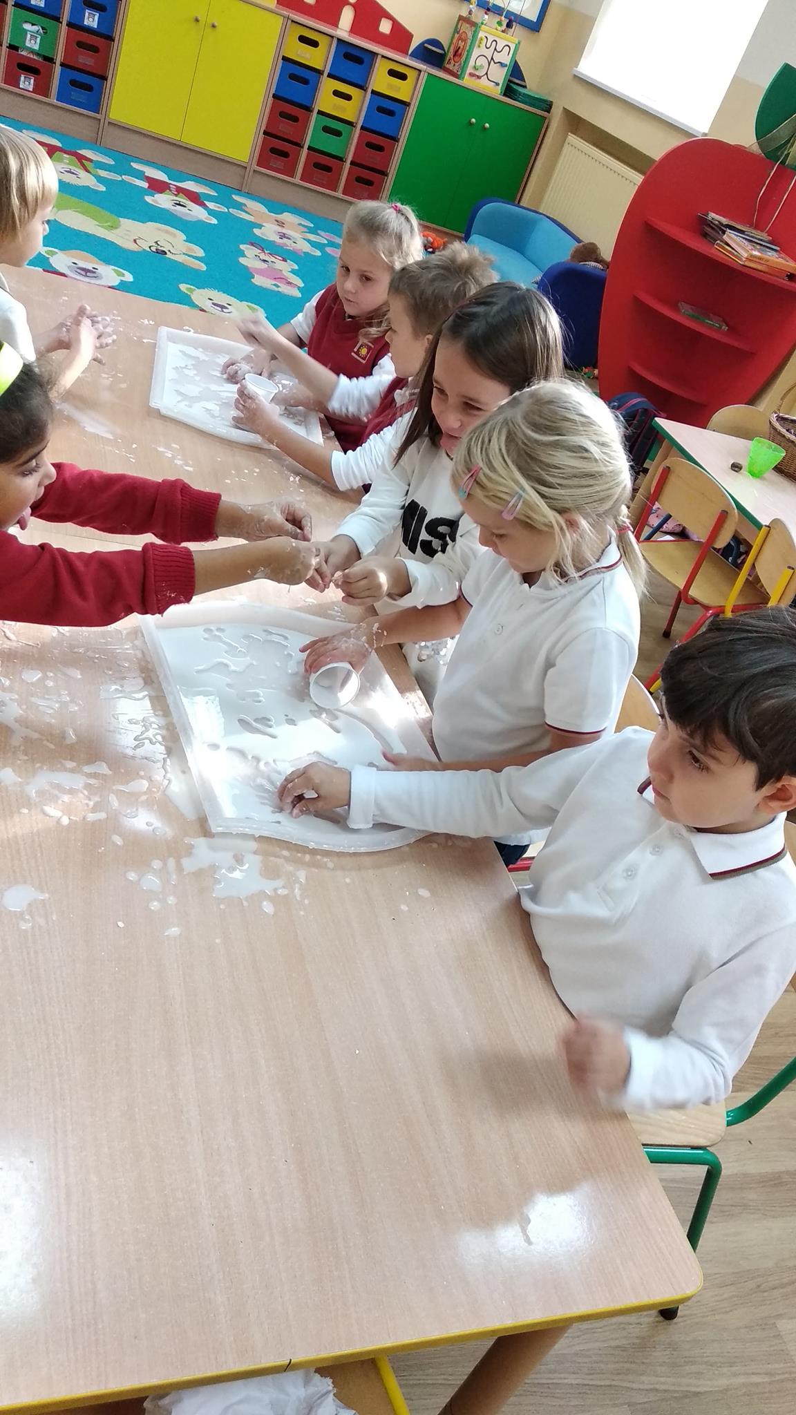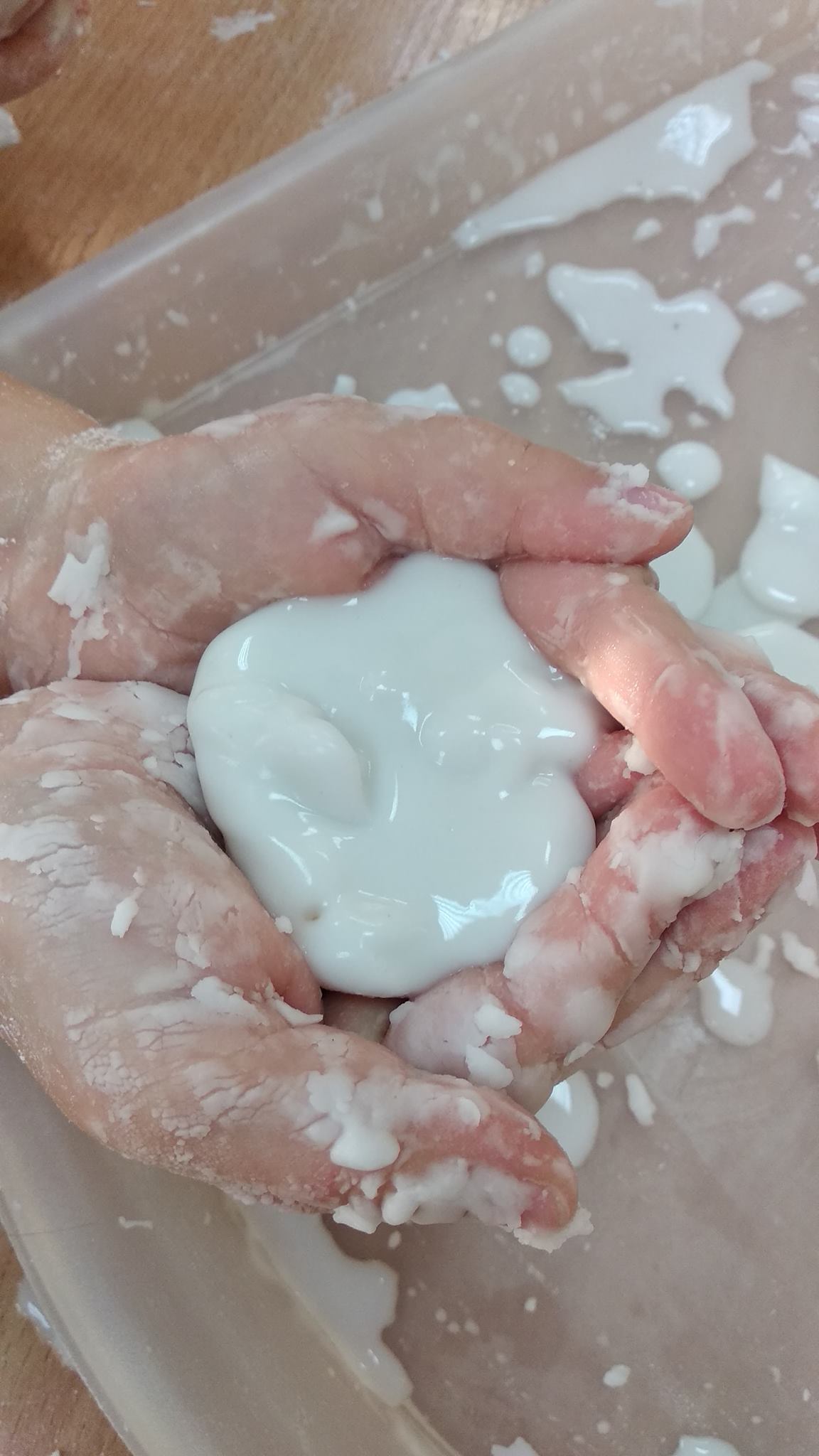 Ciecz, czy nie ciecz?💧💧🔬 Mali badacze z klasy zero B poszukiwali odpowiedzi na to pytanie podczas eksperymentowania z płynem nienewtonowskim.