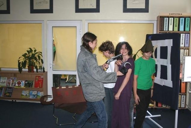 Październik – to Międzynarodowy Miesiąc Bibliotek Szkolnych. W tym czasie pasujemy uczniów 1. klasy szkoły podstawowej na czytelników. Tradycyją jest przygotowanie i wystawienie w bibliotece przedstawienia dla „pierwszaków”.
