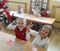 Nauka matematyki z kartami Grabowskiego w klasie zero MessengerWhatsApp Klasa 0 uczyła się matematyki z kartami Grabowskiego. Tym razem graliśmy w „liska matematycznego” doskonaląc umiejętności liczenia.