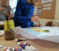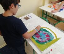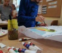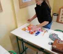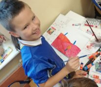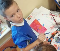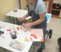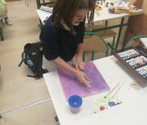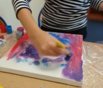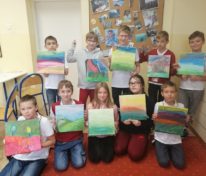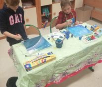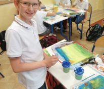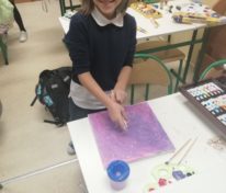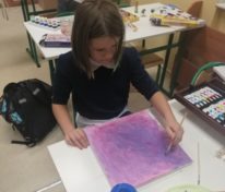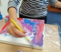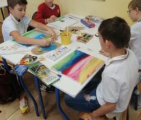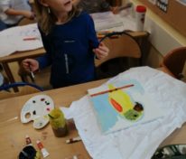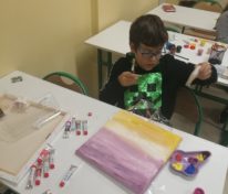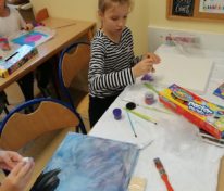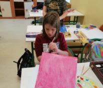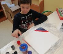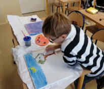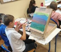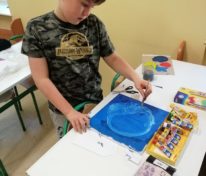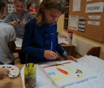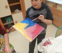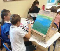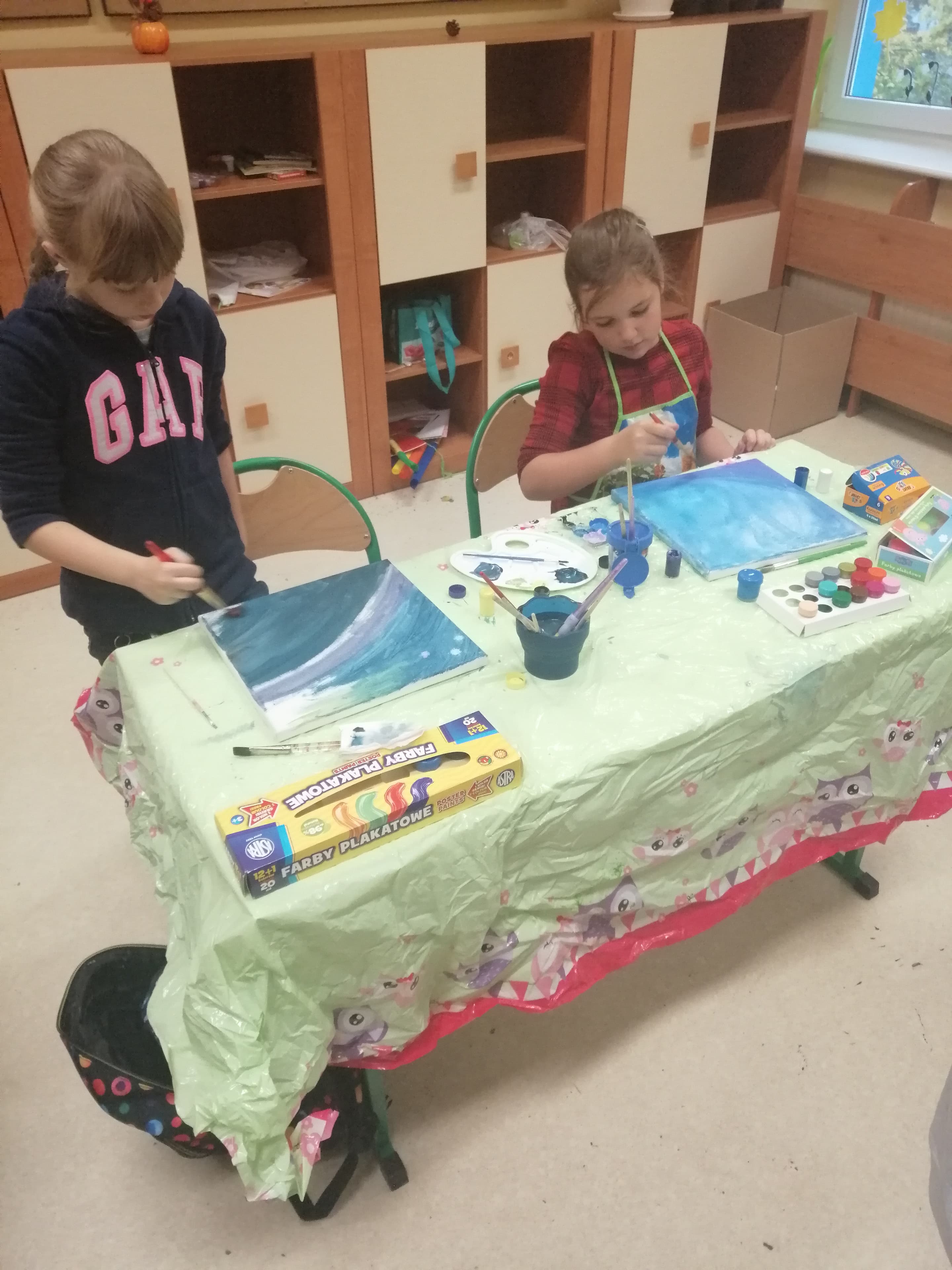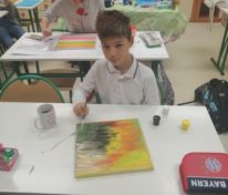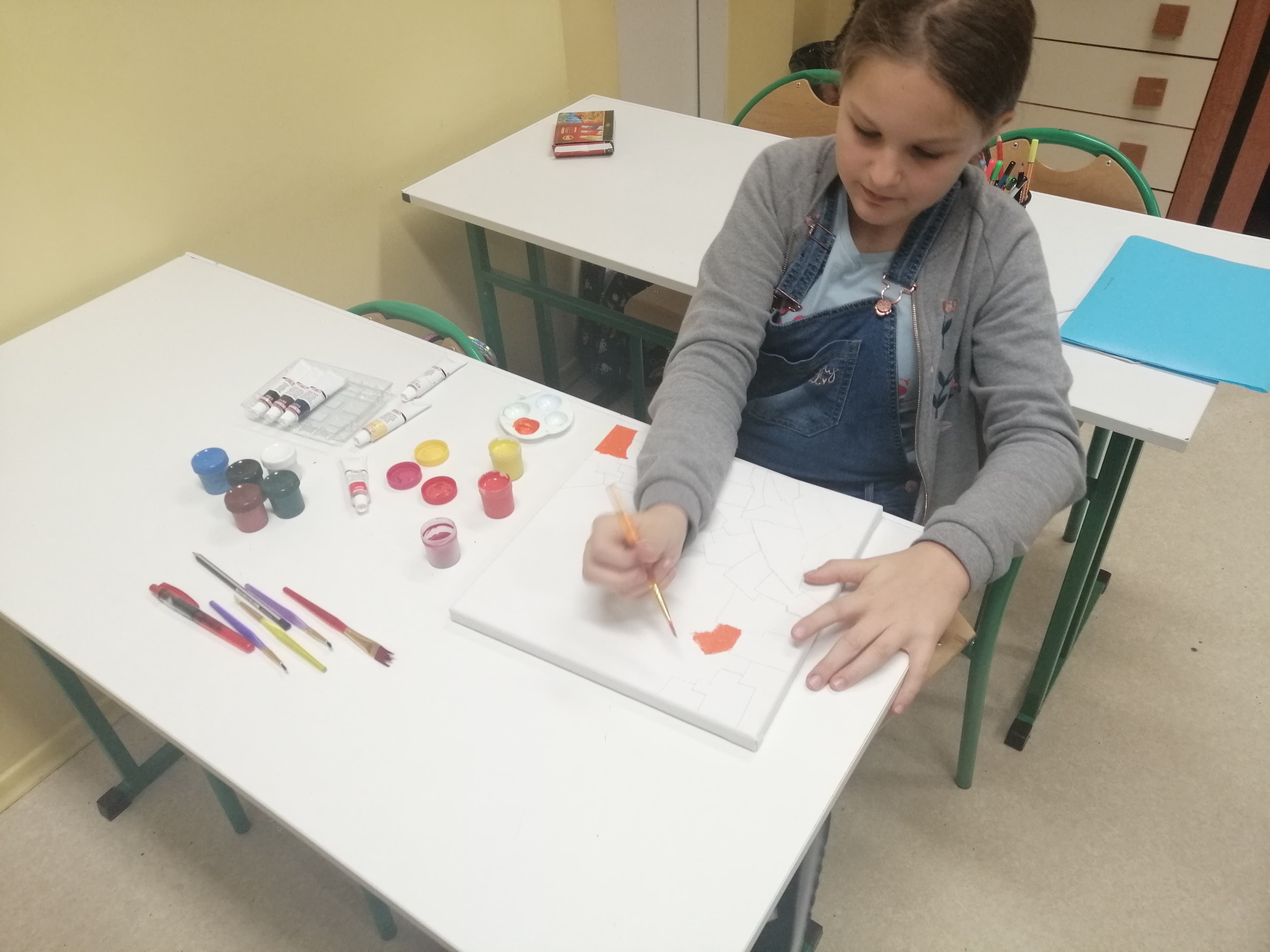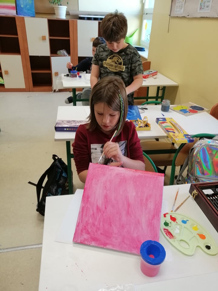 Nauka techniki malarstwa na płótnie klas 4 i 5 MessengerWhatsApp Uczniowie klas 4 i 5 na chwilę zamienili się w artystów i poznali technikę malarstwa na płótnie. Wszyscy pracowali w skupieniu obserwując efekty swojej pracy. Nowa forma zajęć praktycznych bardzo spodobała się uczniom.
