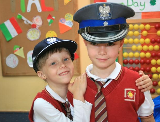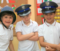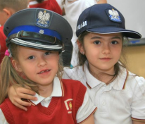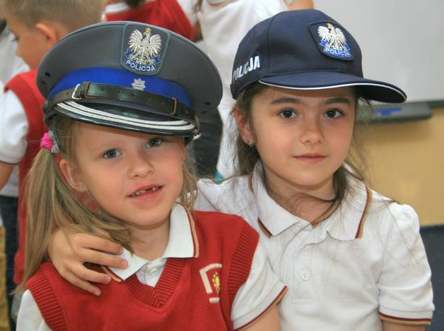 Było zatem m.in. o tym, czego absolutnie nie można robić pod nieobecność rodziców w domu i jak zachowywać się przy przechodzeniu na drugą stronę jezdni. Dodatkową atrakcję stanowiła możliwość przymierzenia policyjnej garderoby. Uczniowie z ochotą zakładali przede wszystkim różne rodzaje czapek. Większości z nich było naprawdę do twarzy, więc kto wie, może kiedyś przywdzieją na stałe policyjny mundur? 🙂