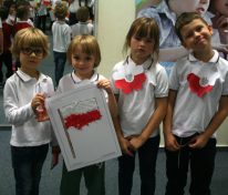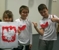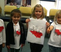Uczniowie klas 0-2 uczestniczyli w Obchodach 100-tnej rocznicy Odzyskania przez Polskę Niepodległości. Wszyscy uroczyście odśpiewali Hymn Polski, obejrzeli także film o symbolach narodowych. Dzieci podzielone na grupy tworzyły wyklejając z bibuły mapę Polski, Godło i Flagę, a uczniowie kl.2 stworzyli z rysunków wielką mapę Polski ️🗺️