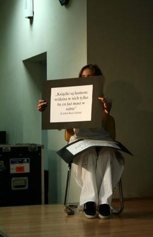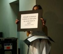 Ideą przedstawienia było zaprezentowanie zgromadzonym, a warto nadmienić, że na lekcję przybyli uczniowie z innych łódzkich gimnazjów, poglądów różnych, znanych osób, na kanwie których należało odpowiedzieć na pytanie: które ze słów – pisane czy mówione – ma większą wartość.