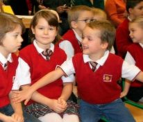 I w końcu nadszedł ten sądny dzień: dzień, w którym uczniowie klasy 1a i 1b stali się prawowitymi wychowankami naszej szkoły. Chyba każdy tego dnia miał tremę, nawet panie wydawały się bardziej poważne niż zwykle. „Czy nie zapomnę tekstu piosenki?”, „Czy zostanę pasowany przez panią Dyrektor?” – zastanawiali się uczniowie od samego rana. Na szczęście wszystko poszło pomyślnie… Na początku uroczystości wszyscy powrócili pamięcią do pierwszych dni naszych nowych uczniów w szkole, co było możliwe dzięki wspólnemu obejrzeniu prezentacji, przedstawiającej bohaterów tejże ceremonii – Pierwszoklasistów. Następnie wychowankowie klas pierwszych zaprezentowali ciekawy program artystyczny, podczas którego pochwalili się swoimi zdolnościami wokalnymi i tanecznymi. Występ „Pierwszaków” nagrodzono gromkimi brawami. Równie entuzjastycznie przyjęto uczniów klasy II i klas III, którzy przygotowali na tę okazję piosenki i grę na instrumentach.