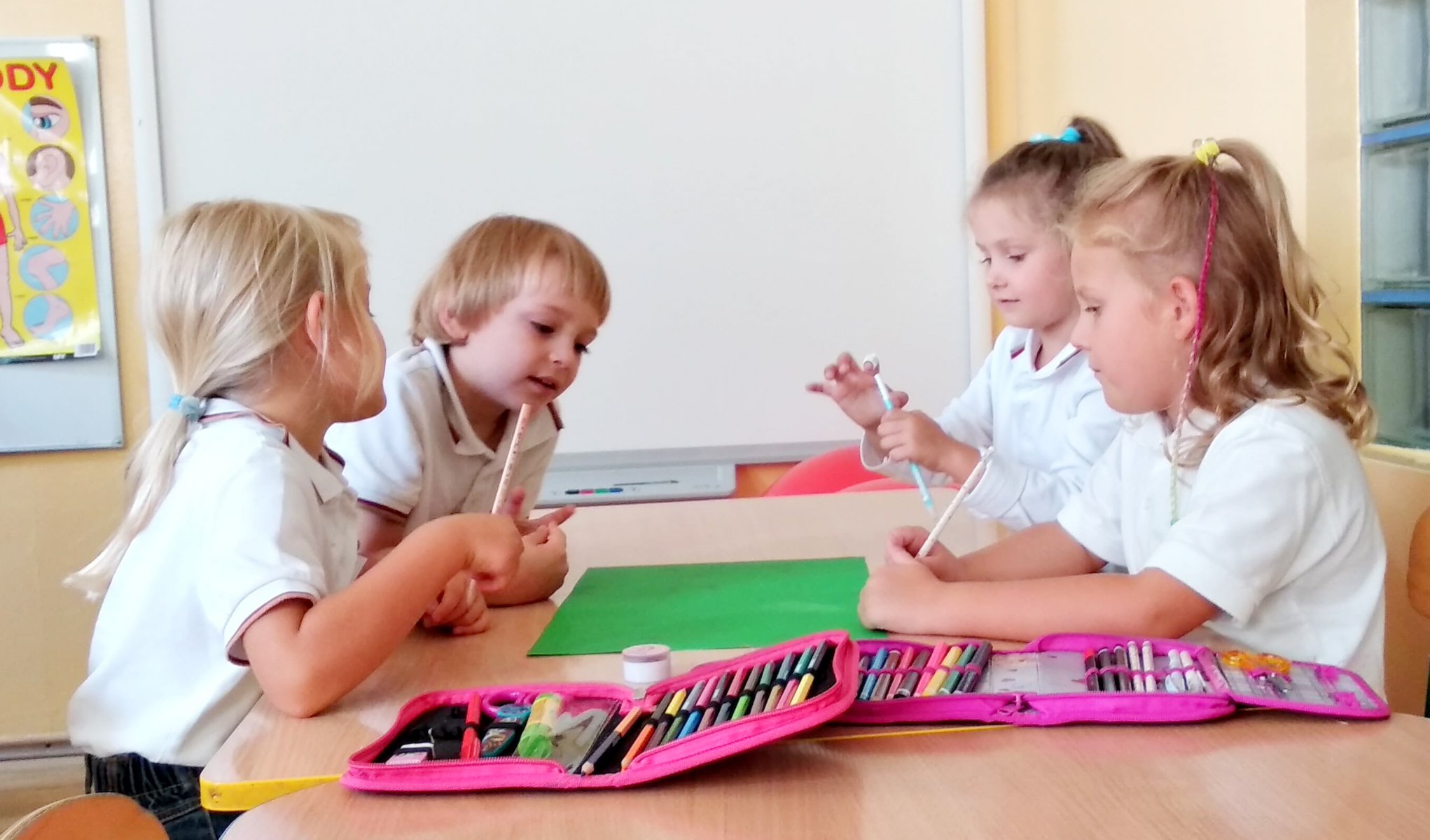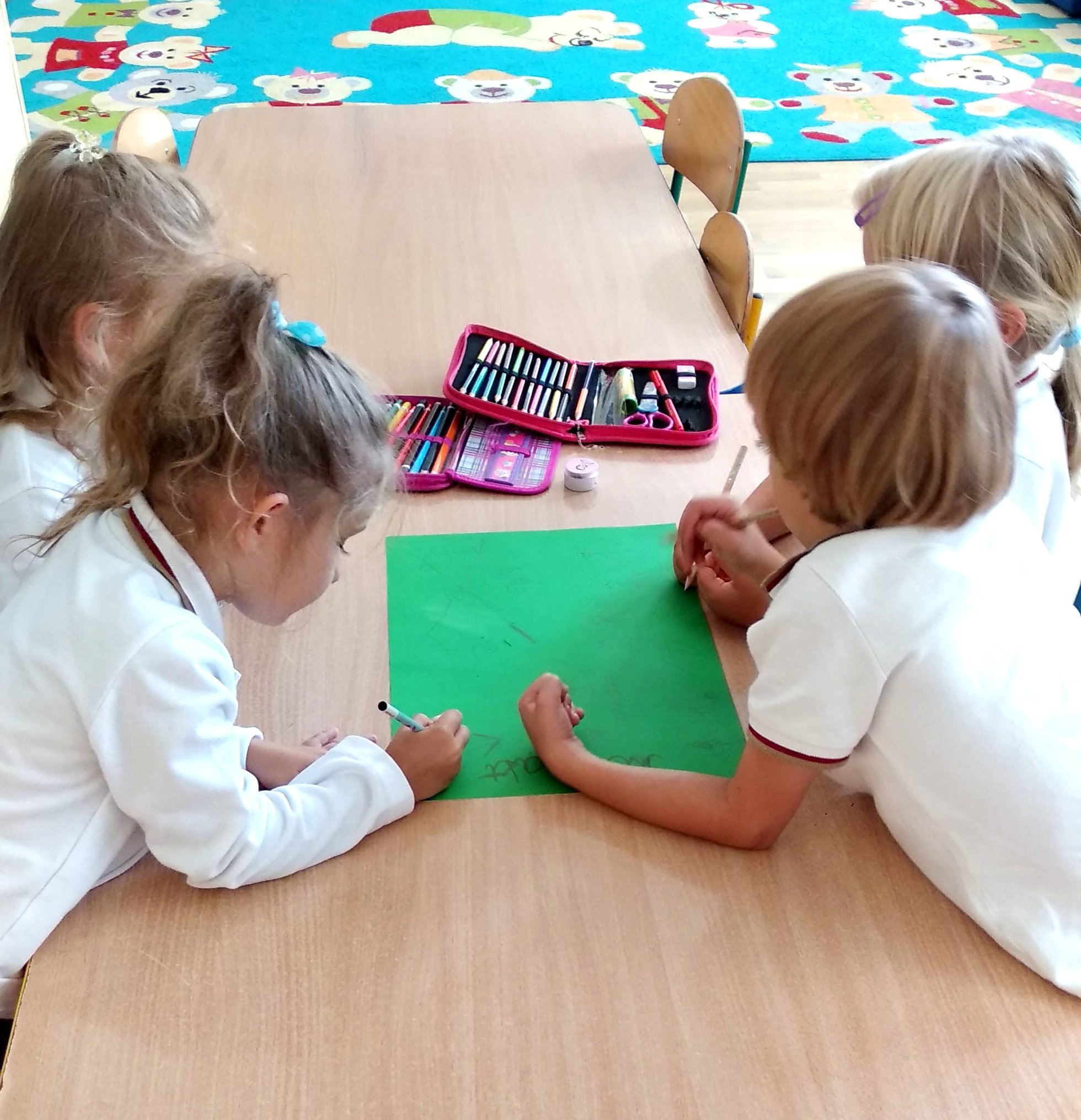 Pierwsze dni uczniów klasy zero B MessengerWhatsApp Uczniowie z klasy zero B w pierwszym tygodniu nauki zapoznali się z zasadami panującymi w szkole i stworzyli w grupach kontrakt zerówkowicza 🖍️✏️📃