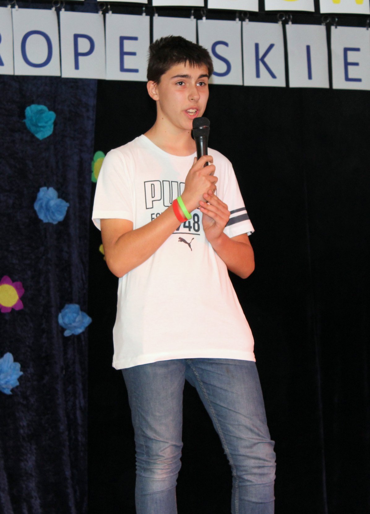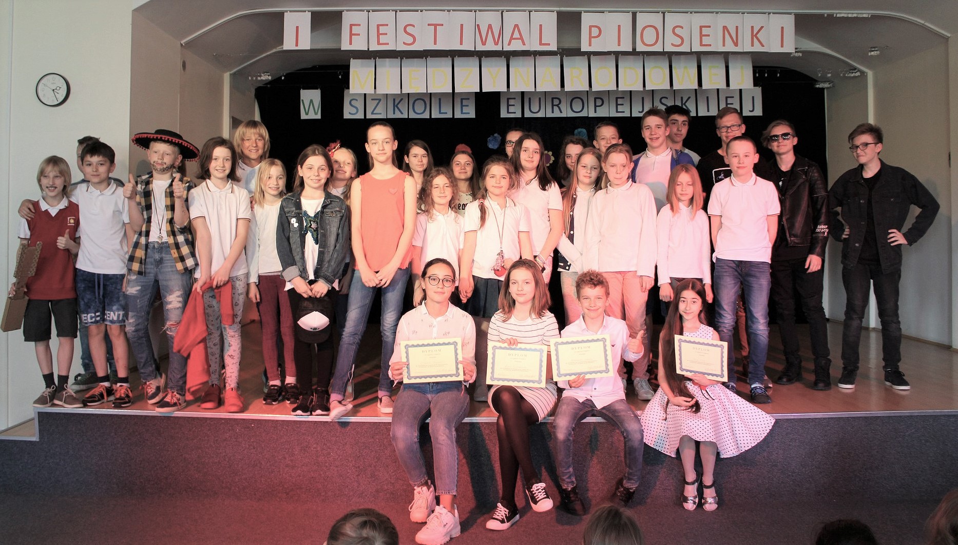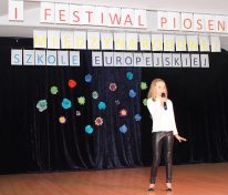 W naszej szkole odbył się I Festiwal Piosenki Międzynarodowej. Uczniowie przedstawili ciekawe interpretacje znanych utworów muzycznych. Mogliśmy usłyszeć piosenki w języku angielskim, niemieckim oraz hiszpańskim. Jury postanowiło przyznać 1.miejsce Wiktorii Hamad z klasy 2A, 2.miejsce Zofii Bryszewskiej z klasy 6A. Na trzecim miejscu znaleźli się ex aequo: Sara Aziz z klasy 4B oraz Aleksander Ścibor z klasy 6A. Jury pochwaliło Matyldę Dzieniecką z klasy 4A za próbę zmierzenia się z trudnym utworem grupy The Cranberries „Zombie”. Doceniony został również trzykrotny występ Jadwigi Szewczyk oraz barwne stroje klasy 4A.