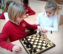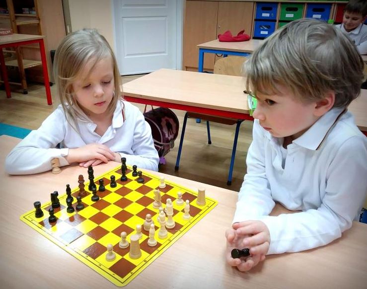 Pojedynki szachowe MessengerWhatsApp Na grę w szachy nigdy nie jest za wcześnie. „Pierwszaki” ćwiczą logiczne myślenie, rywalizując co tydzień w pojedynkach szachowych pod czujnym okiem p. Agnieszki Świercz, w ramach edukacji matematycznej.