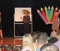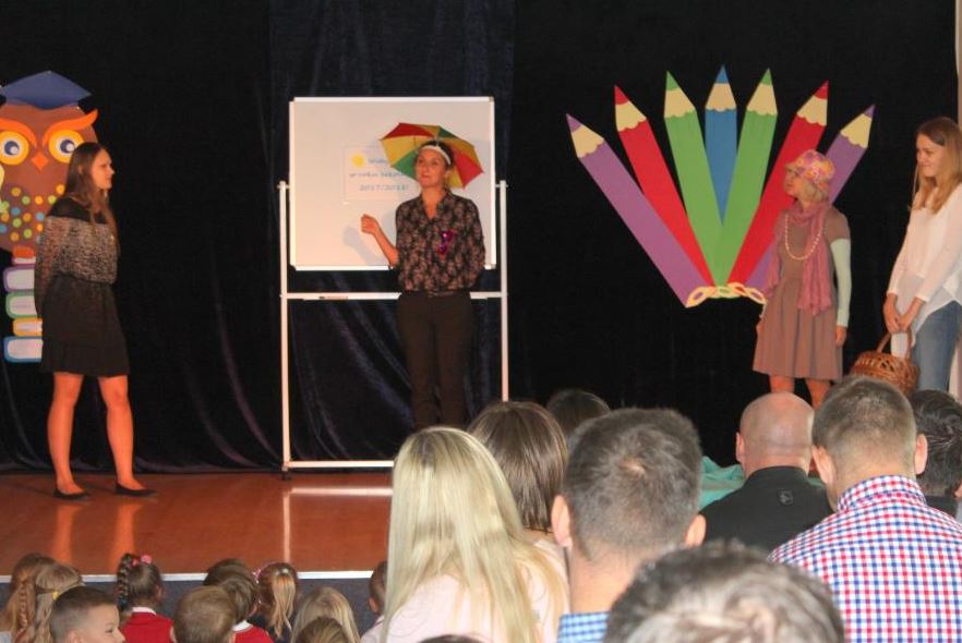 Początek uroczystości był dla wszystkich niespodzianką, bo panie nauczycielki wcieliły się w role uczniów i było wesoło….