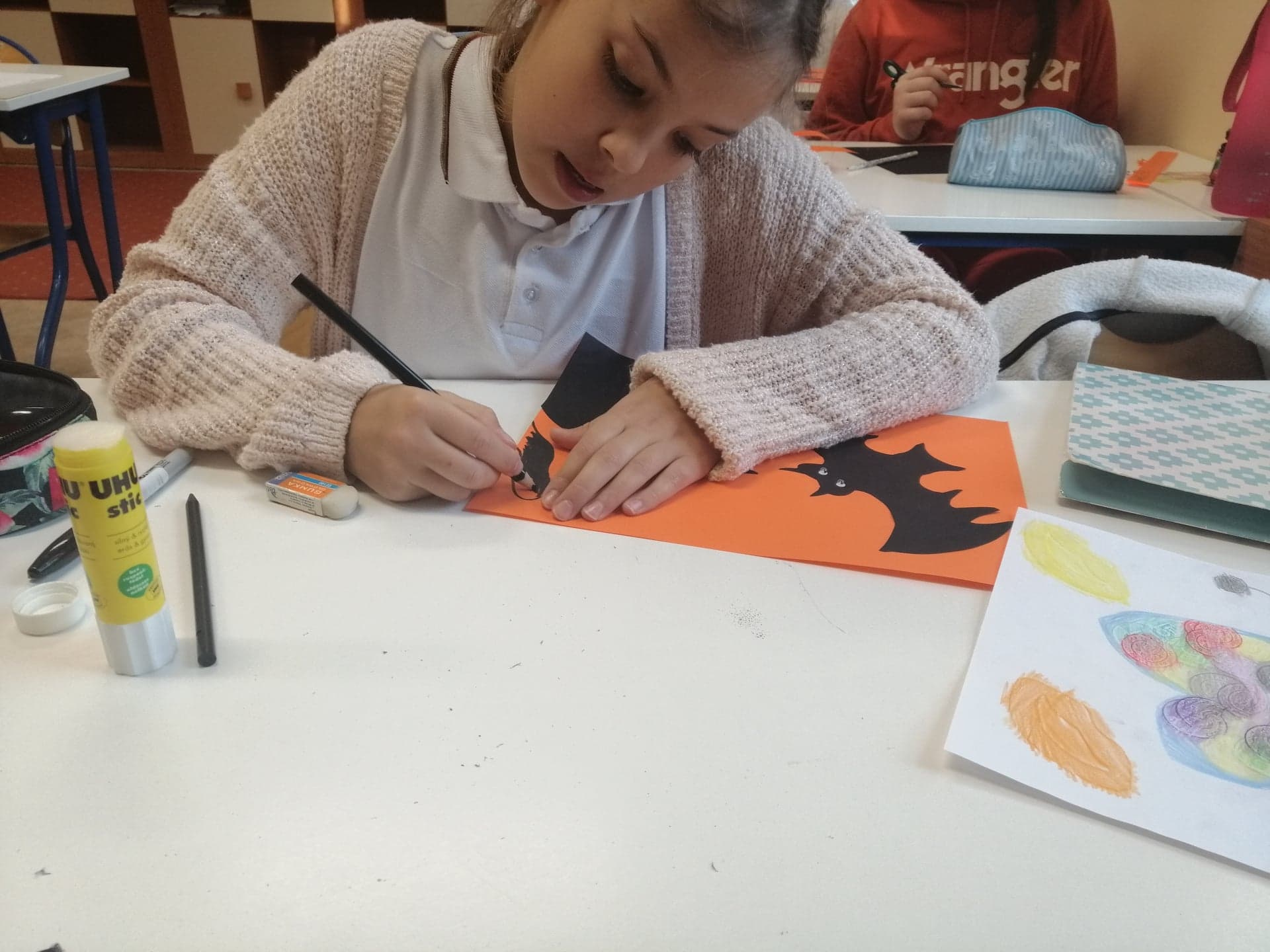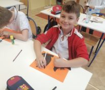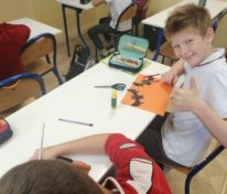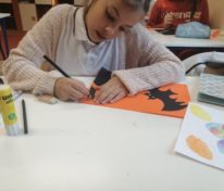 Na lekcji plastyki klasa IV i V tworzyła prace na Halloween które ozdabiają teraz korytarze.