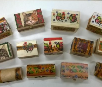 Na zajęciach w szkole kontynuowaliśmy ten temat – malowaliśmy gliniane naczynia, zdobiliśmy drewniane pudełeczka metodą decoupage, kolorowaliśmy wzory ludowych strojów i wycinanek.