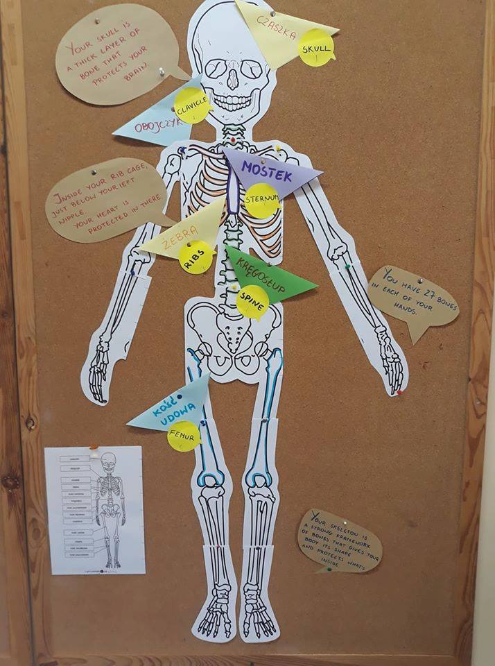 Projekt „Human body for kids”. Praca dotycząca układu kostnego w klasie 1A MessengerWhatsApp Uczniowie klasy 1a, w ramach projektu eTwinning „Human body for kids”, wykonali pierwszą pracę dotyczącą układu kostnego 💀🦴