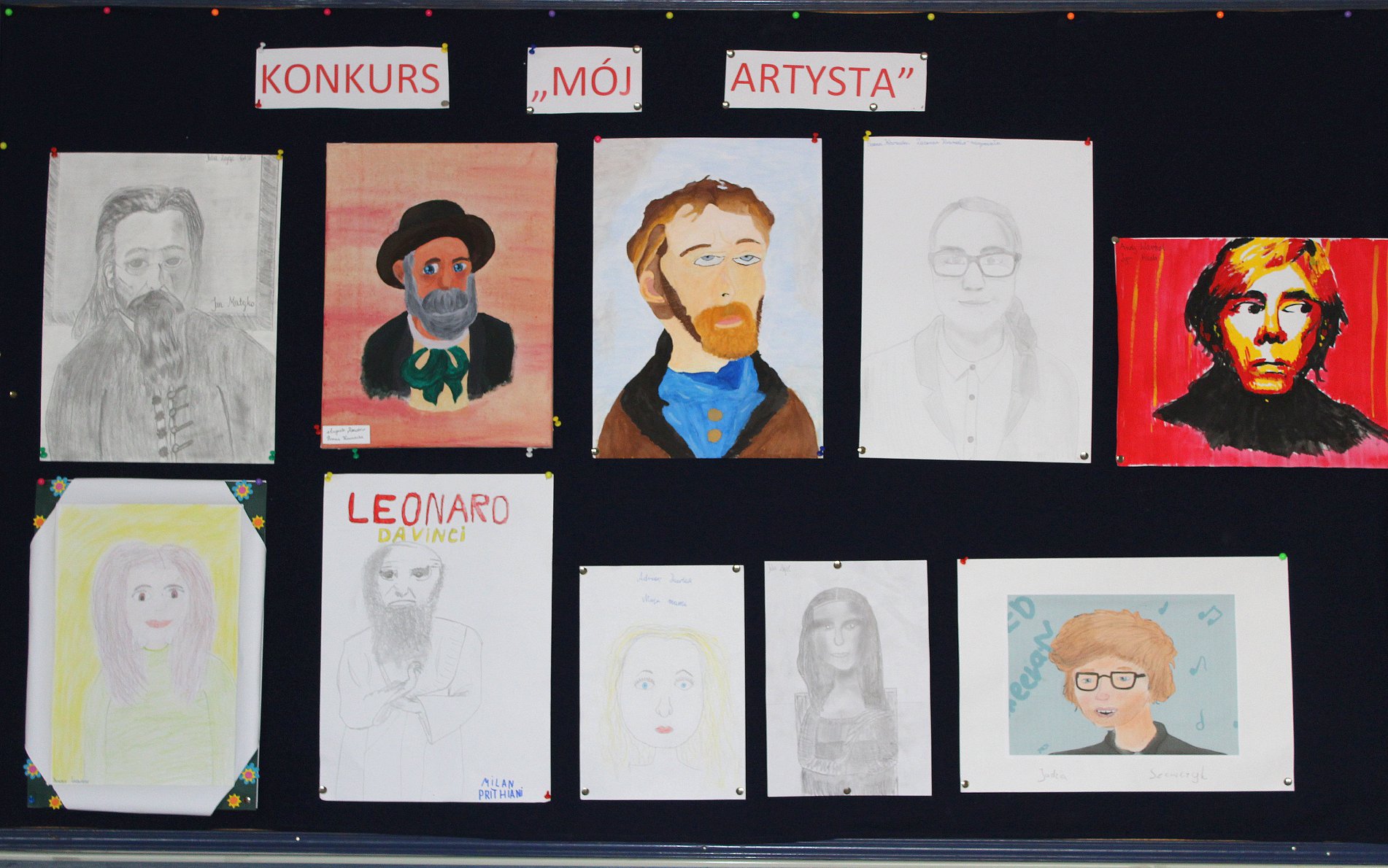 Podczas szkolnego apelu zostały rozdane dyplomy i upominki za udział w konkursie plastycznym „Mój Artysta 2018” zorganizowanego przez Panią Barbarę Szczęsną-Dyńską . Uczniowie mieli za zadanie stworzyć portret ulubionego artysty techniką: rysunkową, malarską lub komputerową. Wśród wyróżnionych znaleźli się: Igor Pękala, Jadwiga Szewczyk, Julia Zając, Hanna Kownacka oraz Sara Aziz. Gratulujemy!