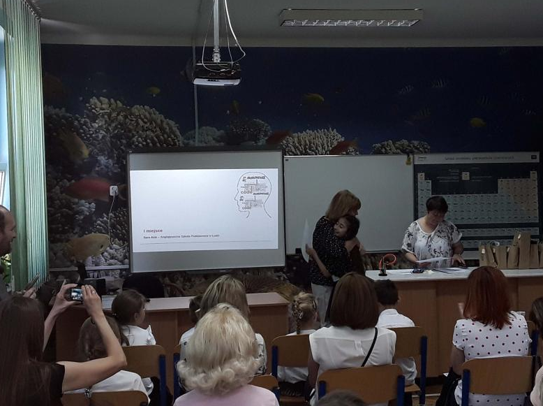W II edycji Wojewódzkiego Konkursu Informatycznego „Dziś uczeń – jutro programista” wzięły udział 2 uczennice klasy 4 naszej szkoły – Sara Aziz i Zuza Kownacka, Bardzo miło nam poinformować, że projekt Sary zajął 1. miejsce! Konkurs polegał na napisaniu interaktywnego programu w języku SCRATCH przedstawiającego prawidłowe zachowanie w sieci internet oraz zagrożenia z tego wynikające. W dniu 9 maja, w siedzibie organizatora konkursu odbyła się gala wręczenia nagród. Sara w przebojowym stylu zaprezentowała swój projekt, zdobywając – oprócz głównej nagrody – także sympatię zgromadzonej publiczności. Gratulujemy uczennicom i opiekunowi: p. Albertowi Horodowiczowi oraz życzymy dalszych sukcesów!