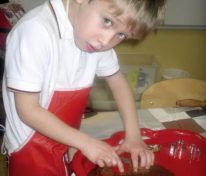 Nasi najmłodsi samodzielnie zrobili i ozdobili świąteczne pierniczki. Najpierw trzeba było zagnieść i wyrobić ciasto piernikowe! Część upieczonych ciastek została szybko zjedzona :), jednak najładniejsze będą wystawione na sprzedaż na kiermaszu świątecznym.
