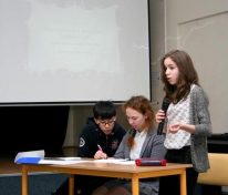 Po debacie, podczas której gimnazjaliści stoczyli wojnę na argumenty, starając się odpowiedzieć na pytanie, czy poezja jest potrzebna w dzisiejszych czasach, mieliśmy przyjemność wysłuchać autorskich interpretacji utworów w wykonaniu Oliwii, Kostka i Karoliny, nagrodzonych gromkimi oklaskami.