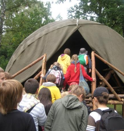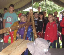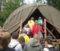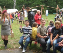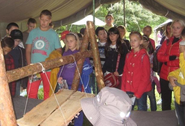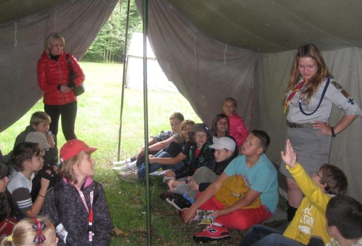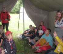Największe wrażenie na naszych uczniach wywarły drewniane półki i prycze, własnoręcznie wykonane przez harcerzy, a także namioty, w których spędza się 3 tygodnie obozowego życia. Entuzjazm wśród dzieci wywołała też pani Dorotka – nauczycielka naszej szkoły, która pojawiła się w tradycyjnym stroju harcerki.