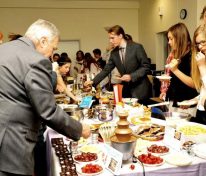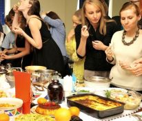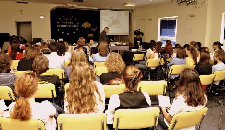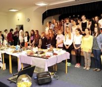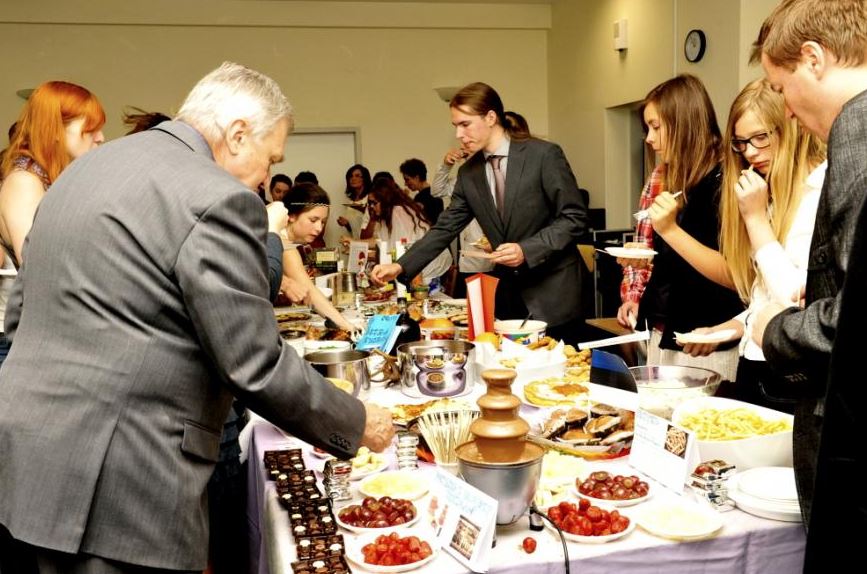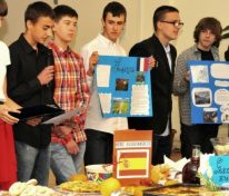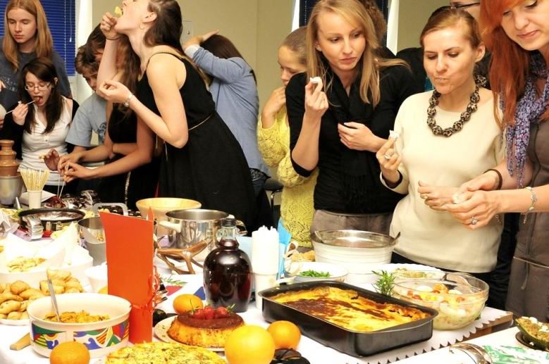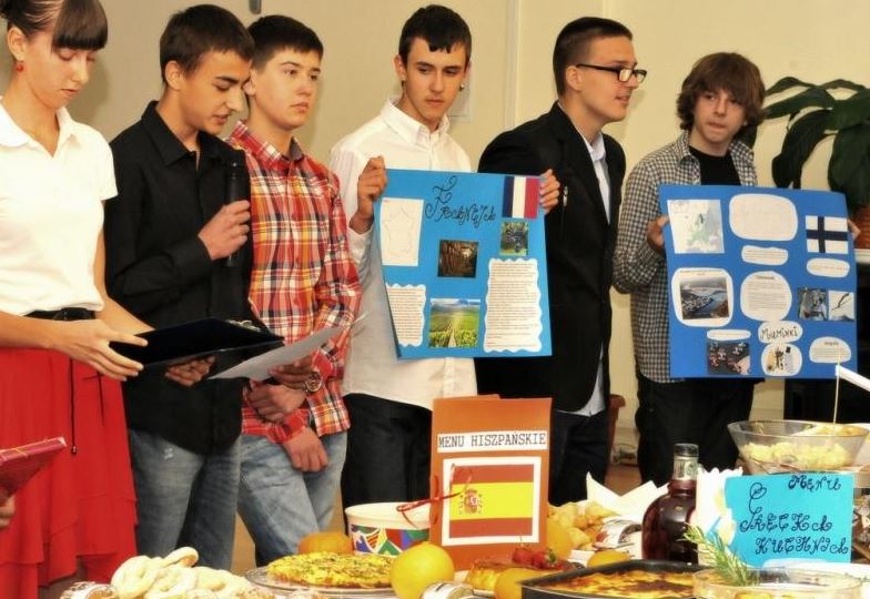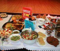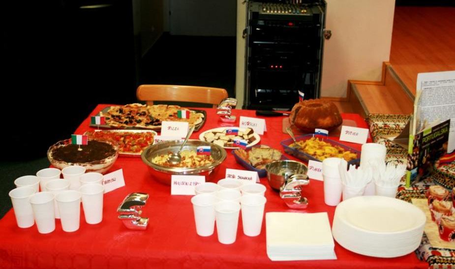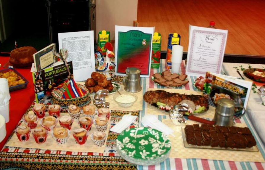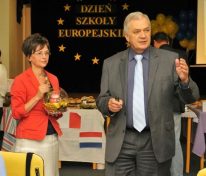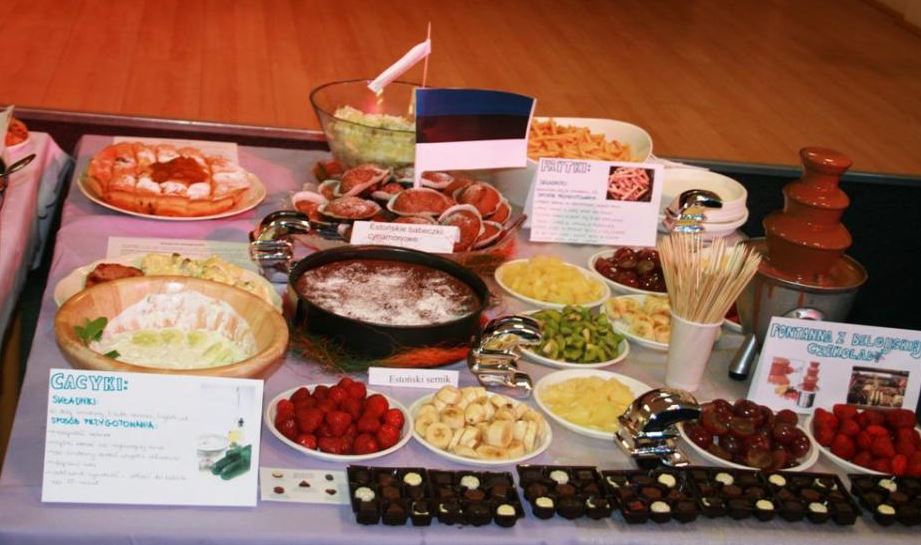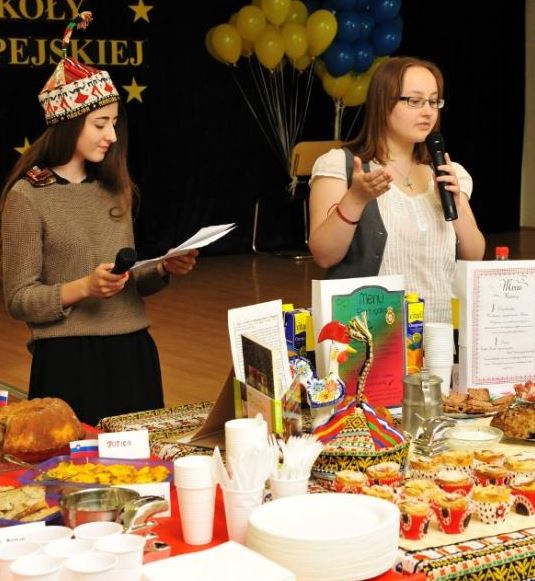 Świętowanie rozpoczęliśmy od uroczystego wykonania Hymnu Szkoły Europejskiej. W programie mieliśmy dwa konkursy, degustację europejskich dań i „balonowy happening”. Pierwszy konkurs „Potrawy narodowe krajów strefy euro” polegał na przygotowaniu i zaprezentowaniu przez uczniów dań z 17 krajów.
