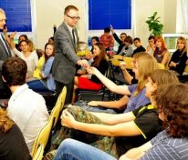 Dzień Szkoły Europejskiej zakończyliśmy symbolicznym wypuszczeniem żółto-niebieskich balonów, pamiętając o idei zjednoczonej Europy, której jesteśmy nieodłączną częścią. Gratulujemy zwycięzcom, dziękujemy Gościom, Rodzicom (domyślamy się Państwa udziału w naszym święcie), Nauczycielom, Uczniom i do zobaczenia za rok!