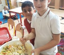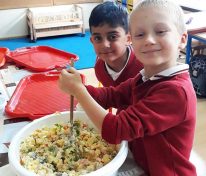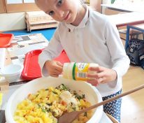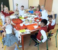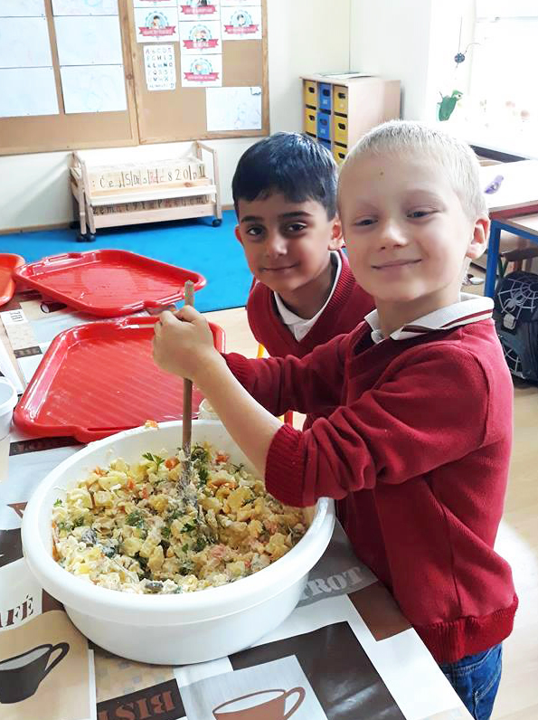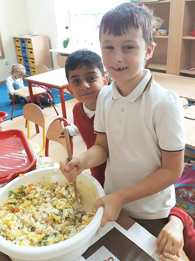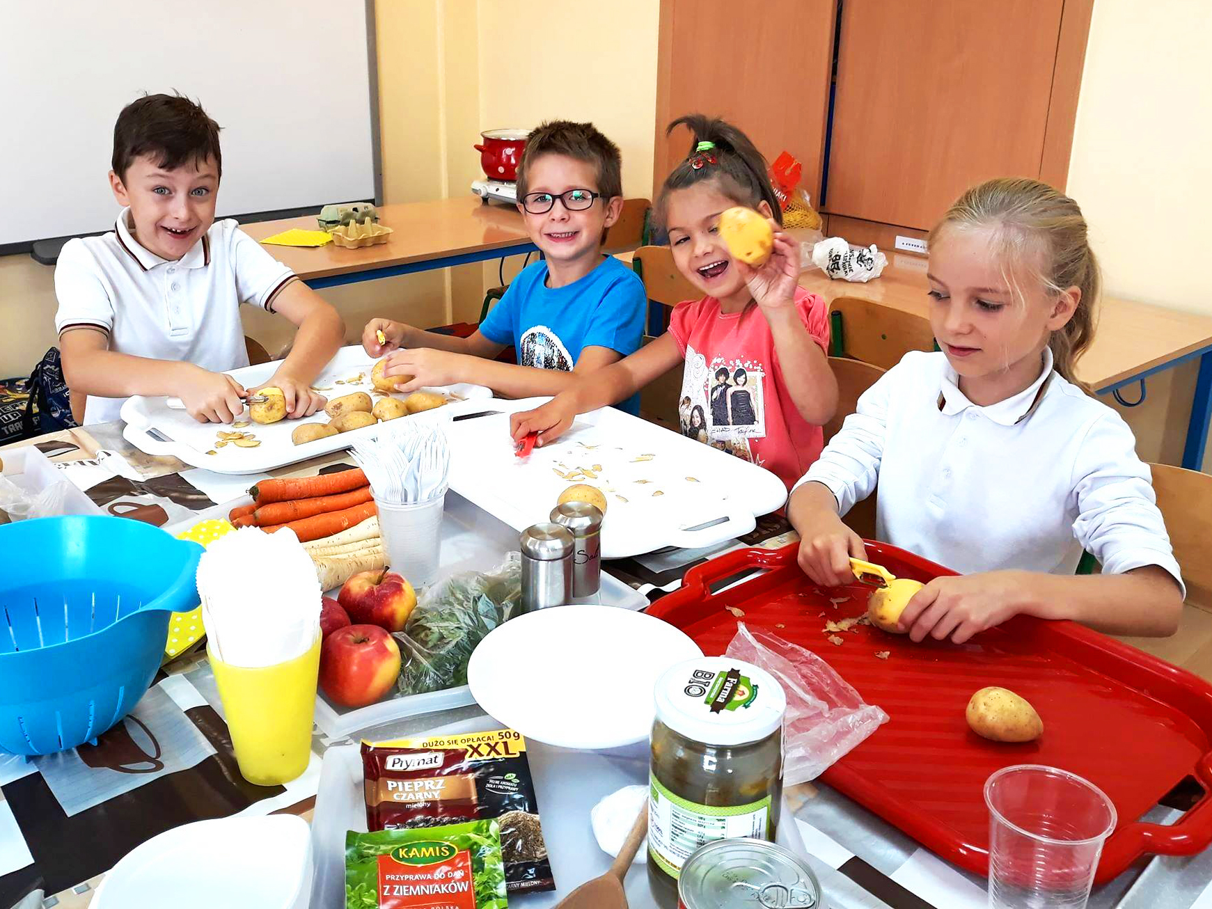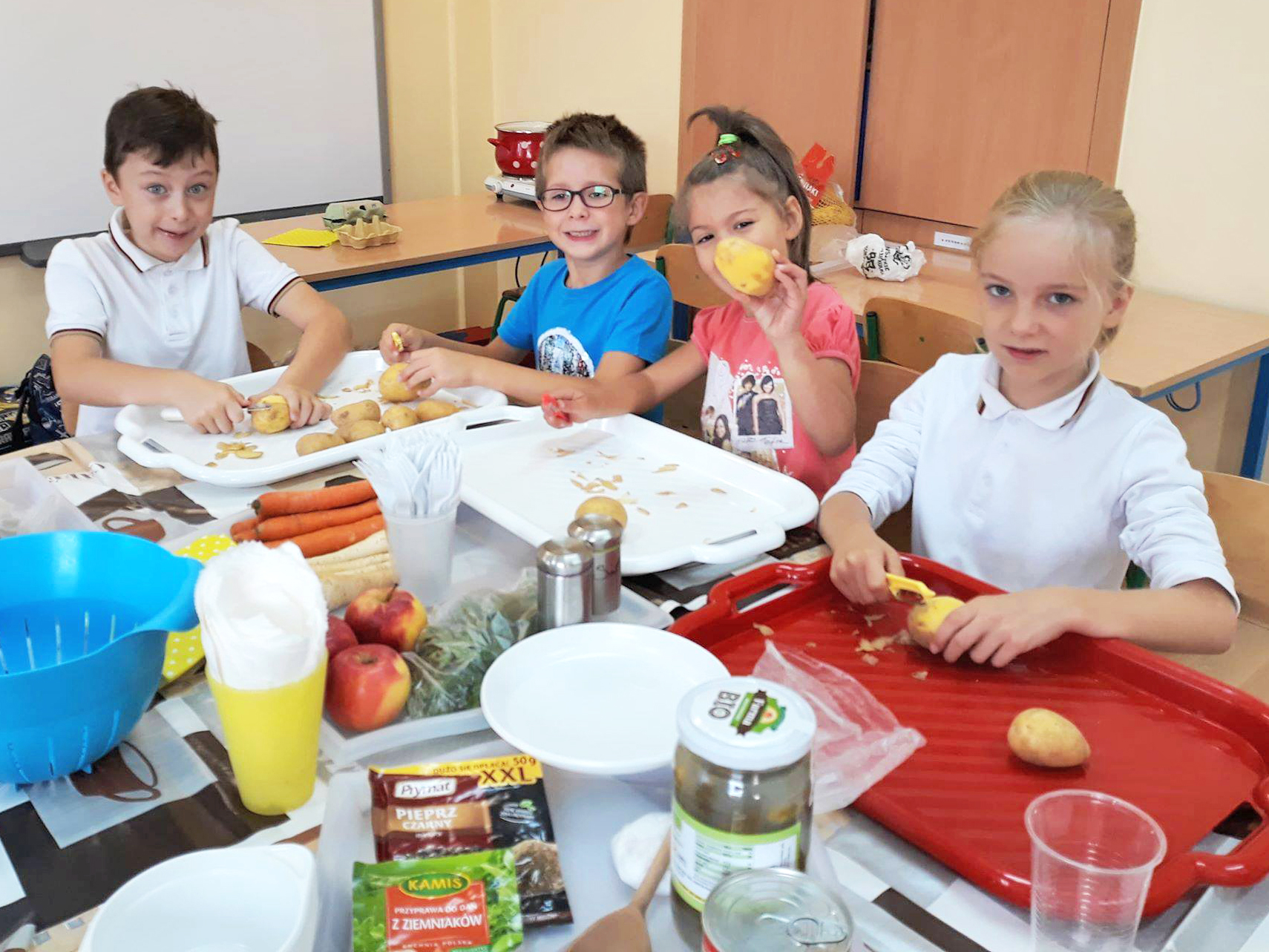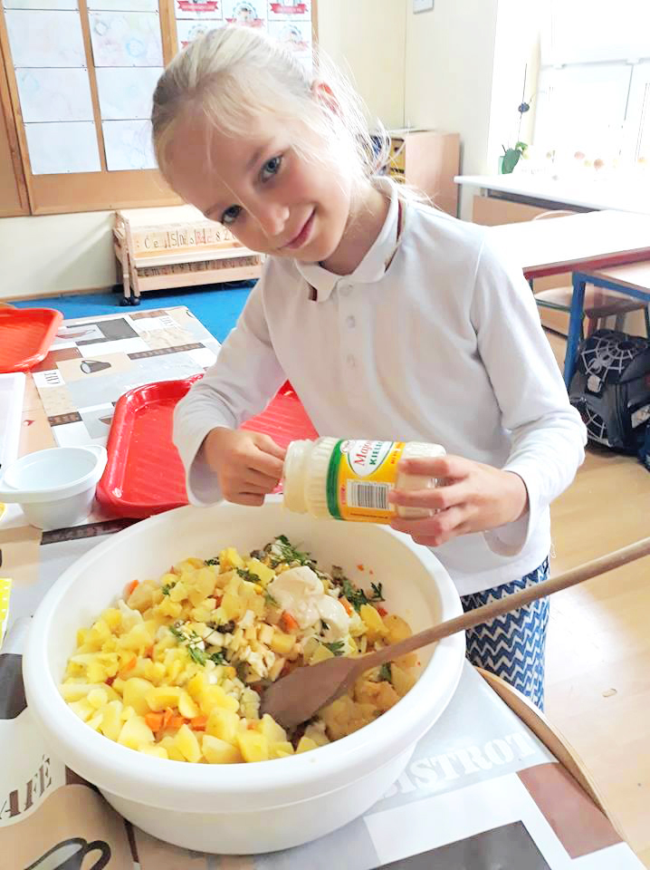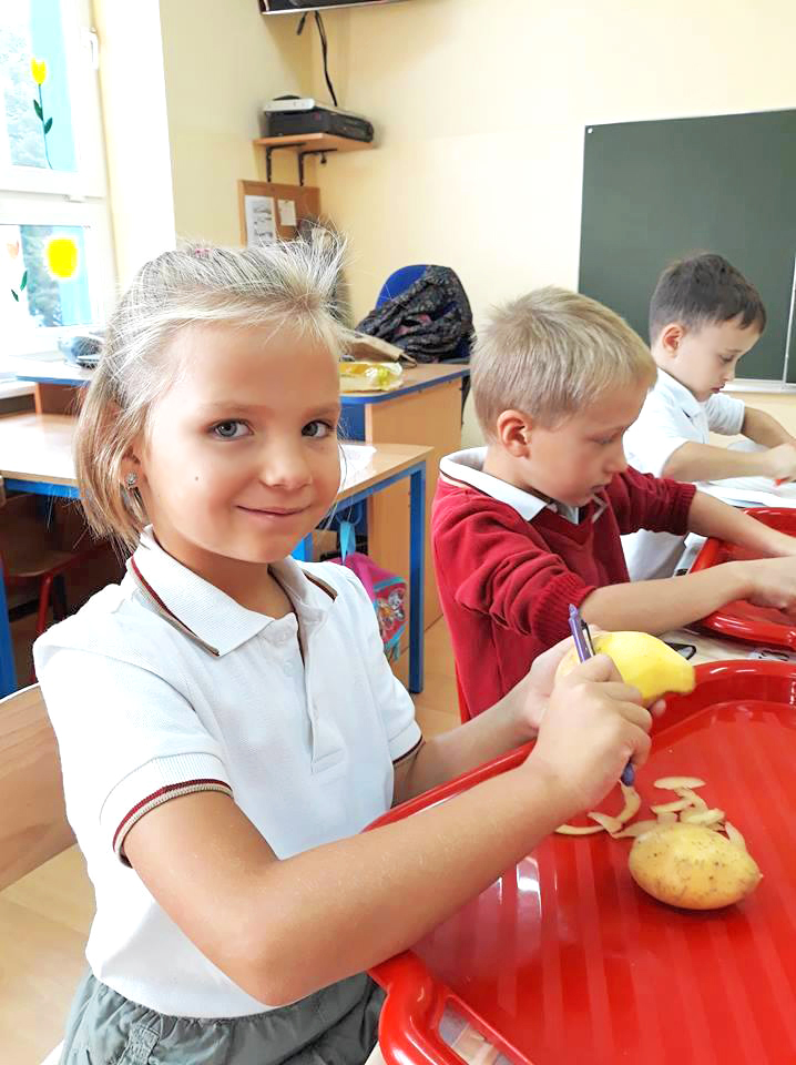 Święto Ziemniaka w klasie pierwszej A MessengerWhatsApp Klasa 1a obchodziła Święto Ziemniaka🥔🎉. Dzieci z małą pomocą przygotowały sałatkę ziemniaczaną oraz pieczone ziemniaczki. 🍲