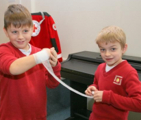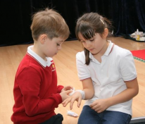 Zajęcia nie ograniczały się tylko do teorii, a wręcz przeciwnie – dominowały zadania praktyczne. Uczniowie wykonywali m.in. masaż serca na manekinie i uczyli się właściwego sposobu bandażowania.