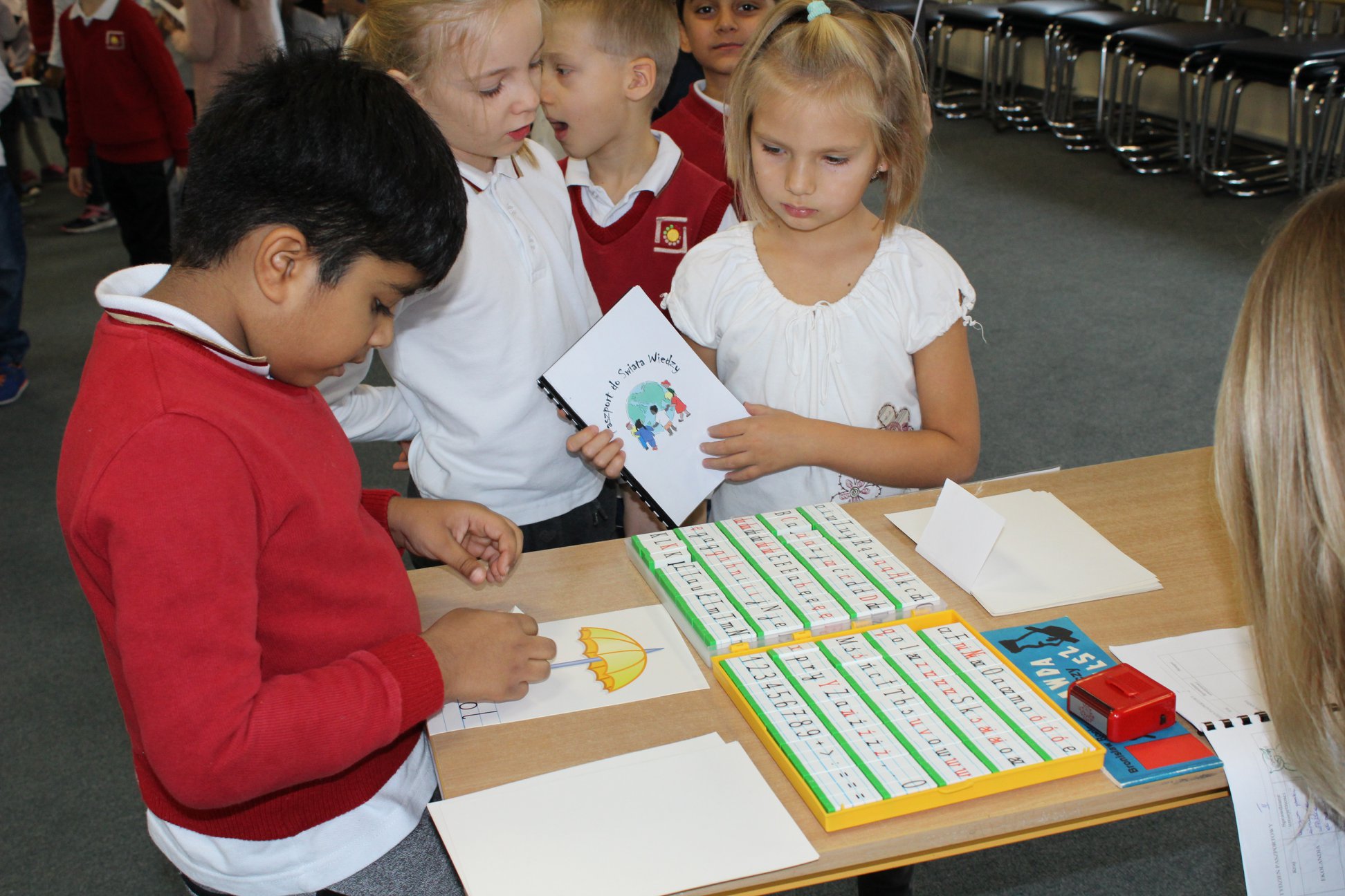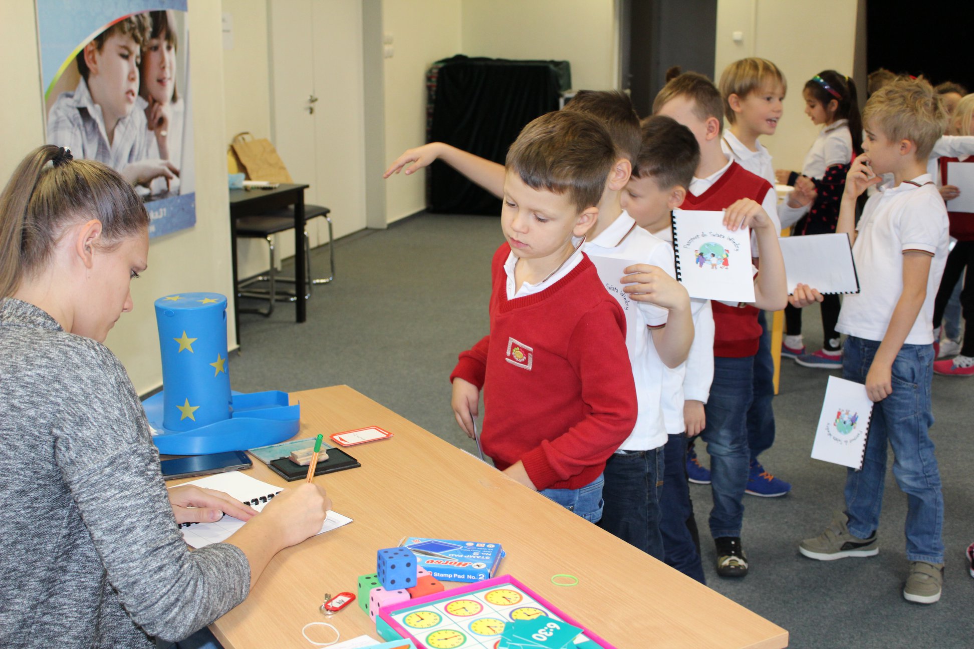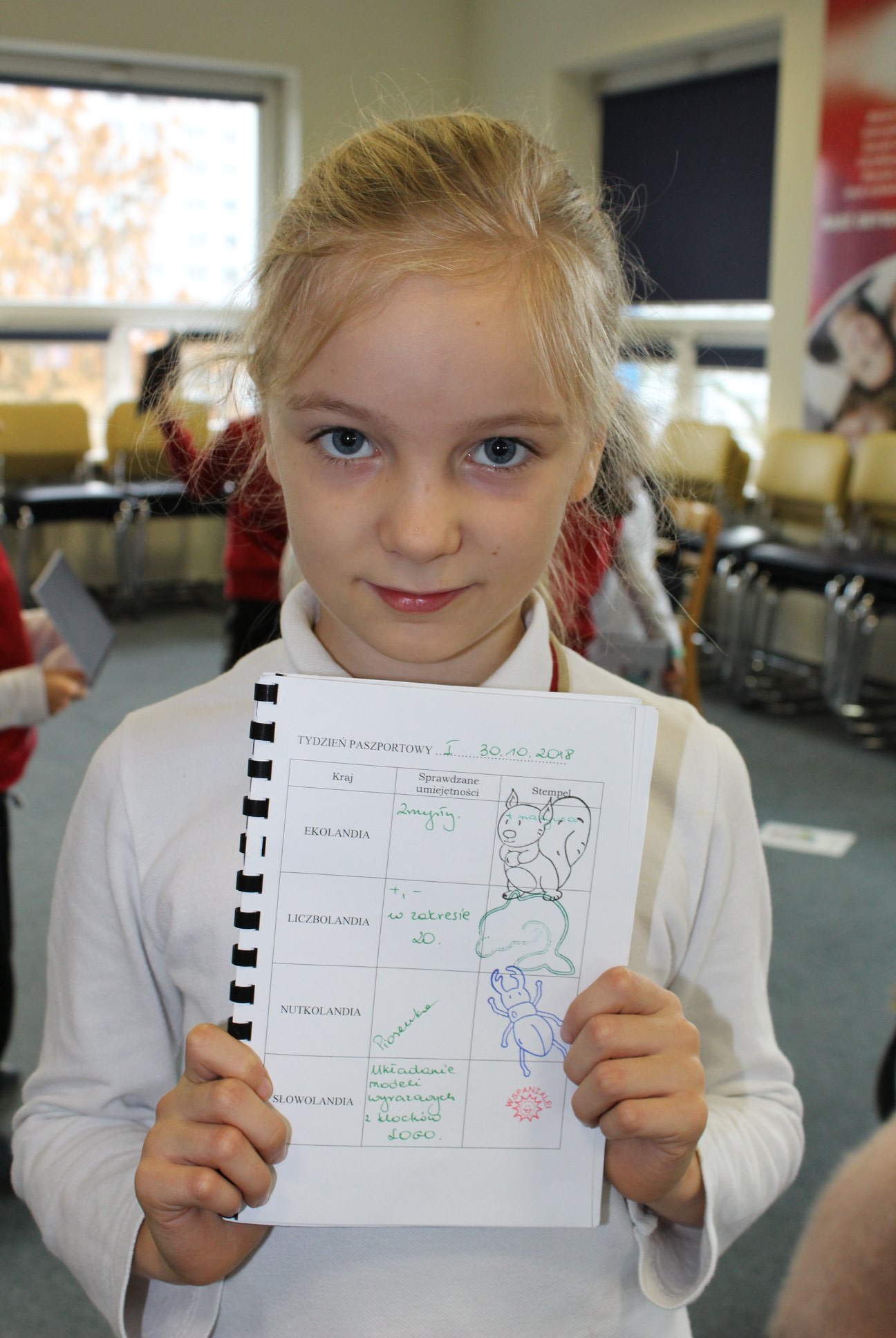 „Wiedzę swoją dziś sprawdzamy i paszporty zapełniamy. A to stempel z liczbolandi, jest i wiza z nutkolandi.