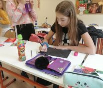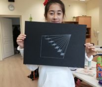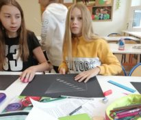 Uczniowie klasy 6 na lekcji plastyki MessengerWhatsApp Uczniowie klasy 6 na lekcji plastyki poznają perspektywę jednopunktową experymentując z kolorem papieru i zastępując ołówek białą kredką.
