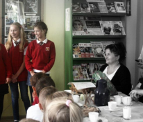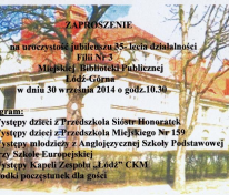 w niecodziennym spotkaniu z okazji 35-lecia działalności Filii Nr 3 Miejskiej Biblioteki Publicznej Łódź-Górna. Wysłuchaliśmy wspaniałego koncertu w wykonaniu Kapeli Łódź, podziwialiśmy występy przedszkolaków, a uczennice z 5. klasy naszej szkoły (Ada, Karolina, Michalina) zaśpiewały kilka piosenek w języku angielskim i niemieckim.