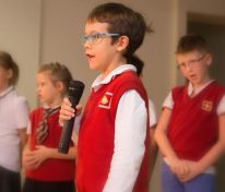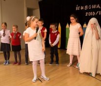 Później swoje pięć minut mieli również nieco starsi uczniowie z klas 3-6. Czwartoklasiści przygotowali żartobliwą część artystyczną. Śmiechu było bez liku!